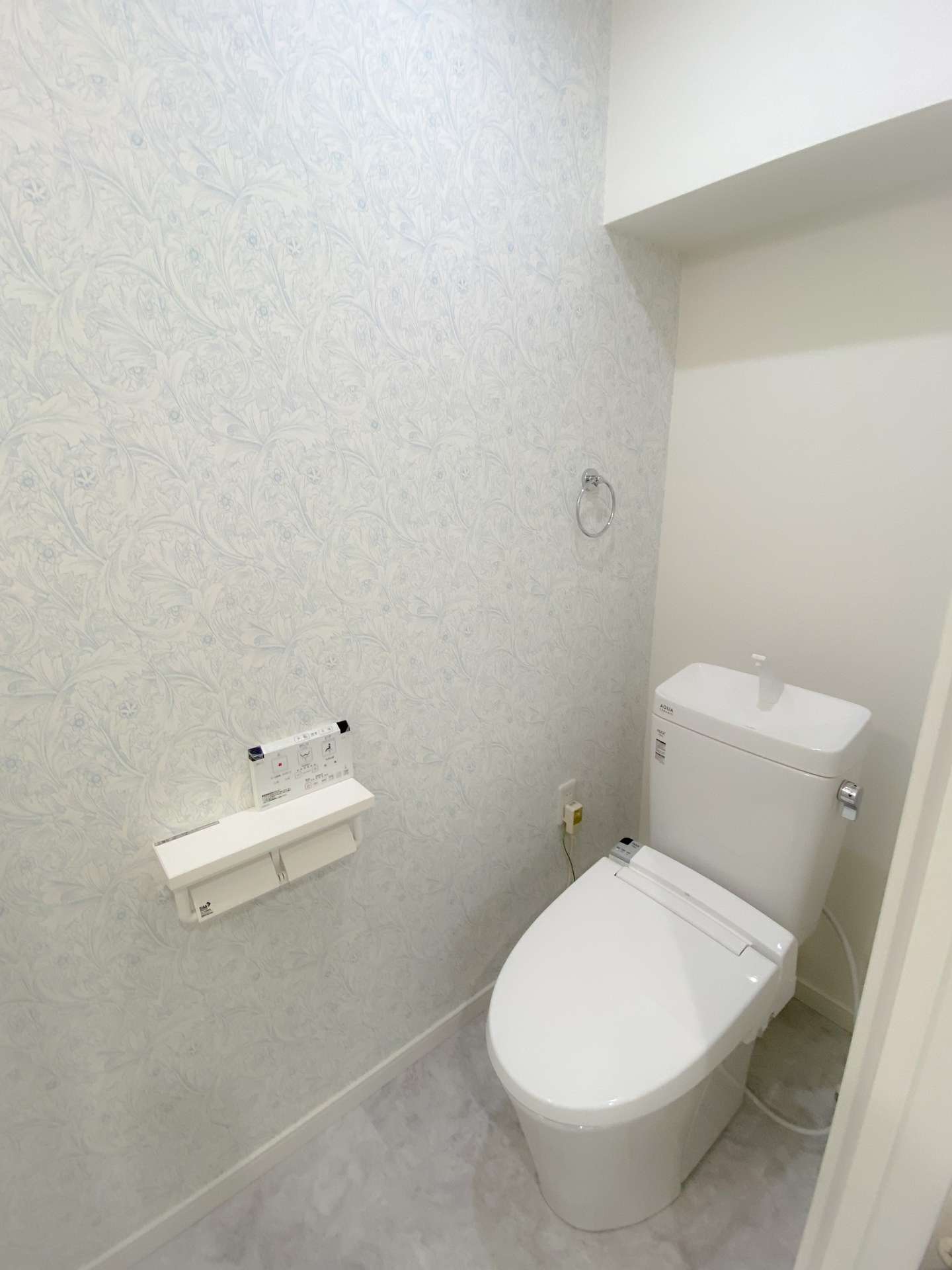 背面にのみ柄をアクセントにすることにより奥行きのあるオシャレなトイレになりましたね。