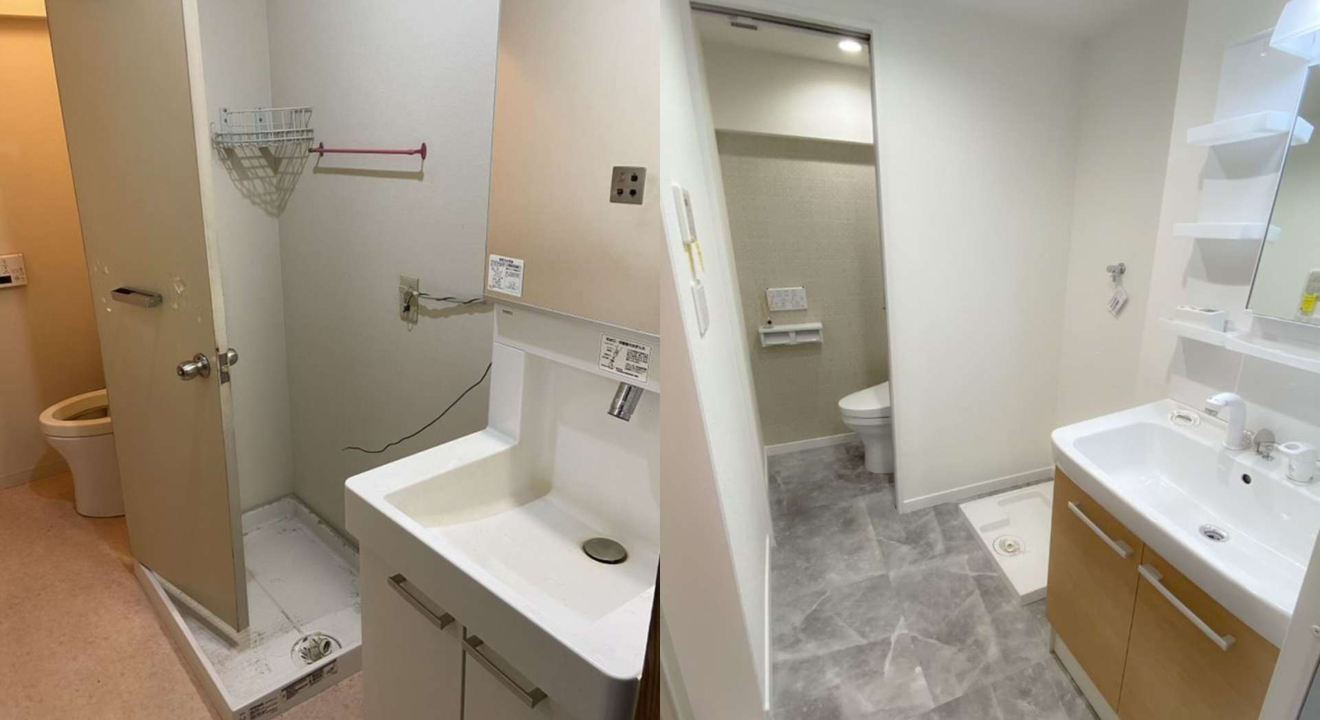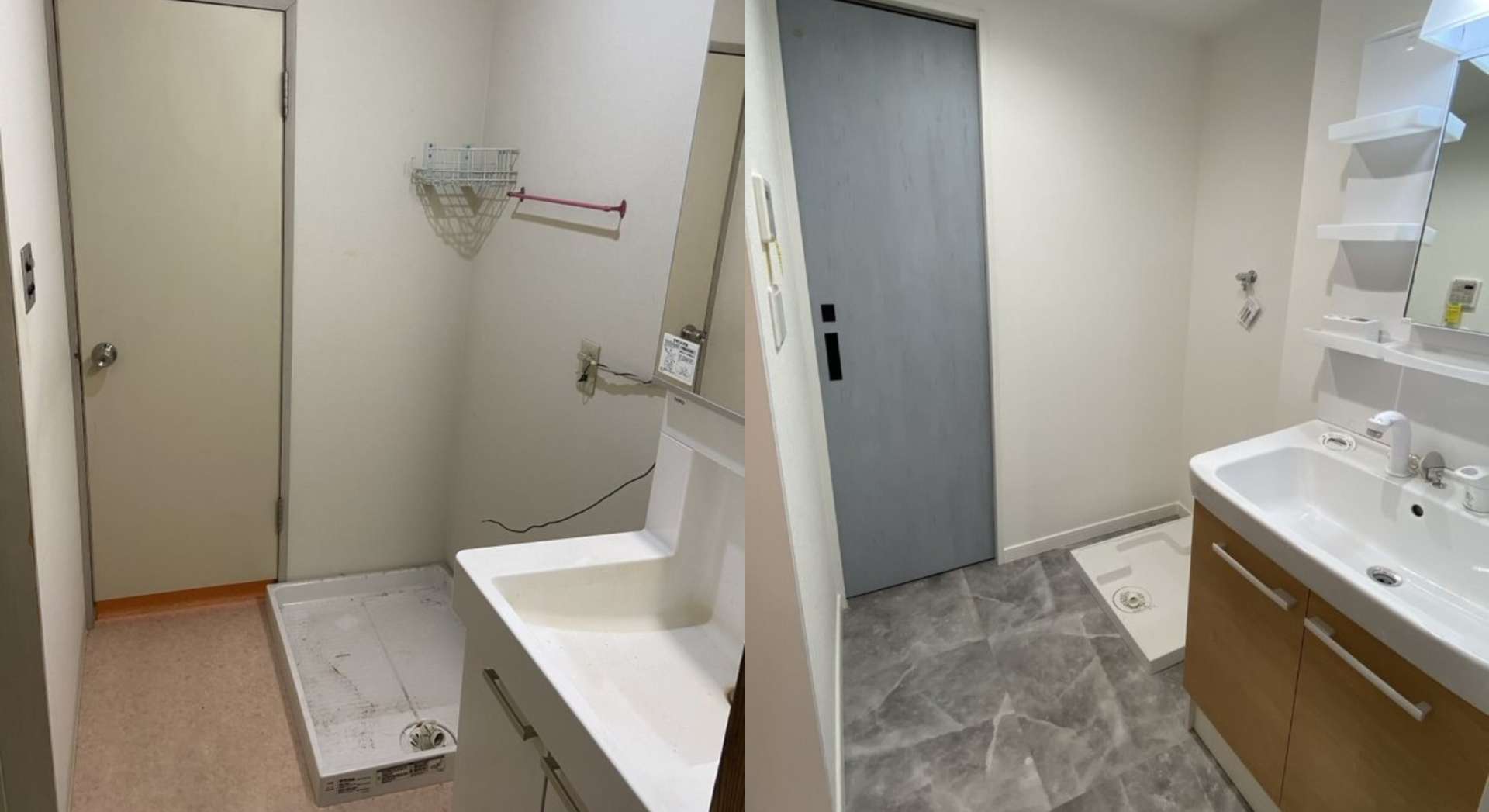 劣化されていた洗面所が、素敵なLaundry roomに大変身ですね^^