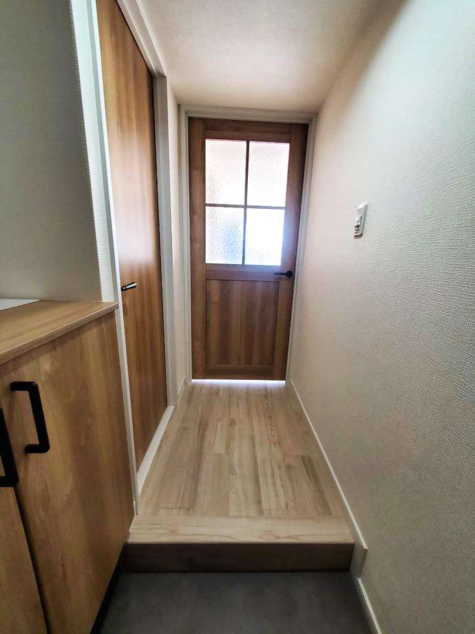 目の前のドアから光が溢れていてワクワクさせてくれる演出リフォームです。