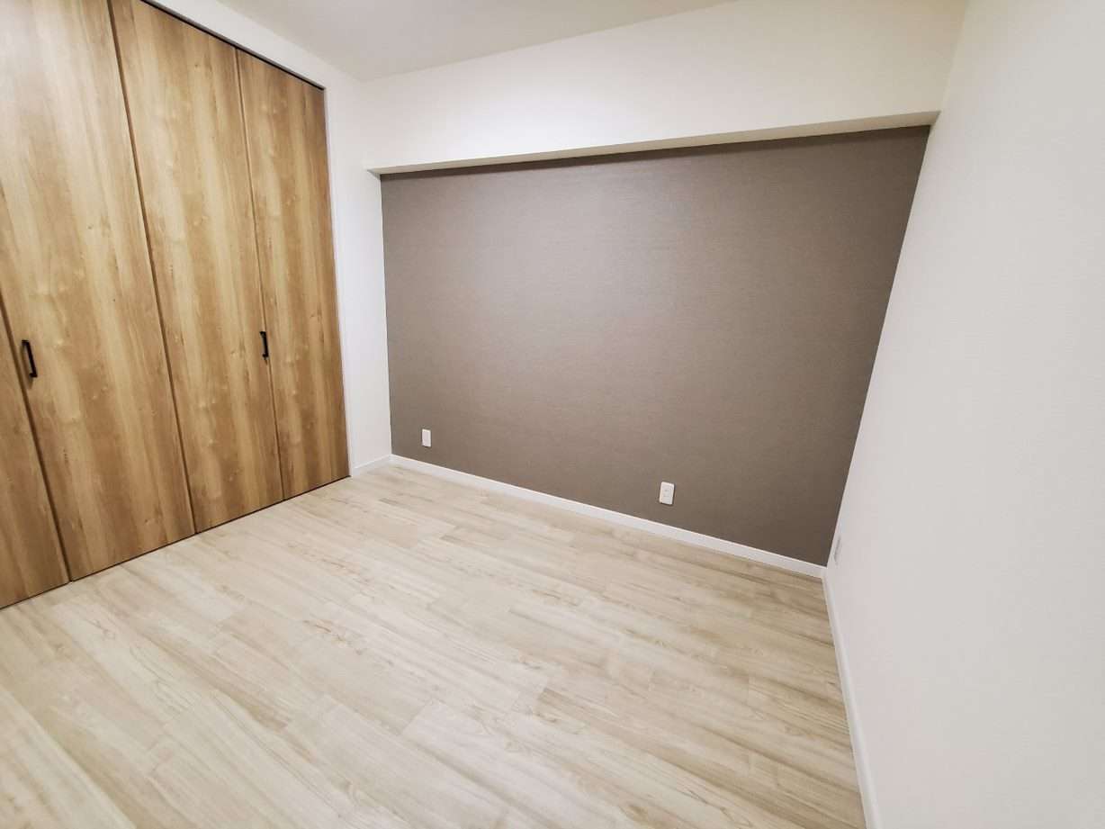 アクセントクロスをブラウンにすることにより家具も合わせやすく、より引き立つ効果があります。