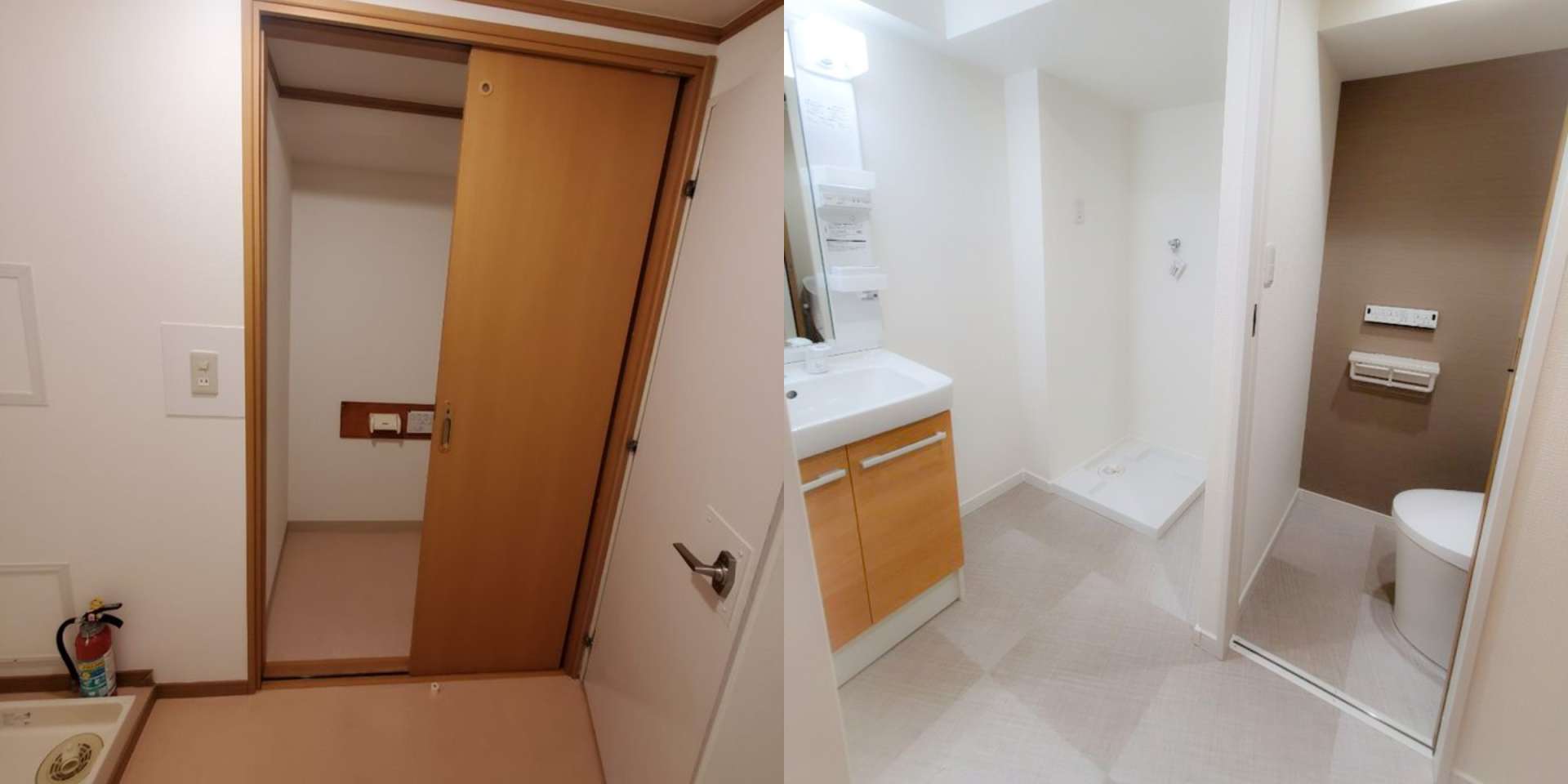 引き戸からクロス、フロア、全面リフォームしランドリールームの出来上がり。