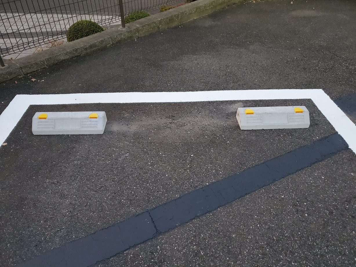 新品の車止めブロックになると新しい駐車場の完成、わくわくしますね!
