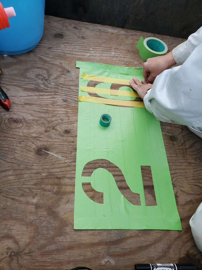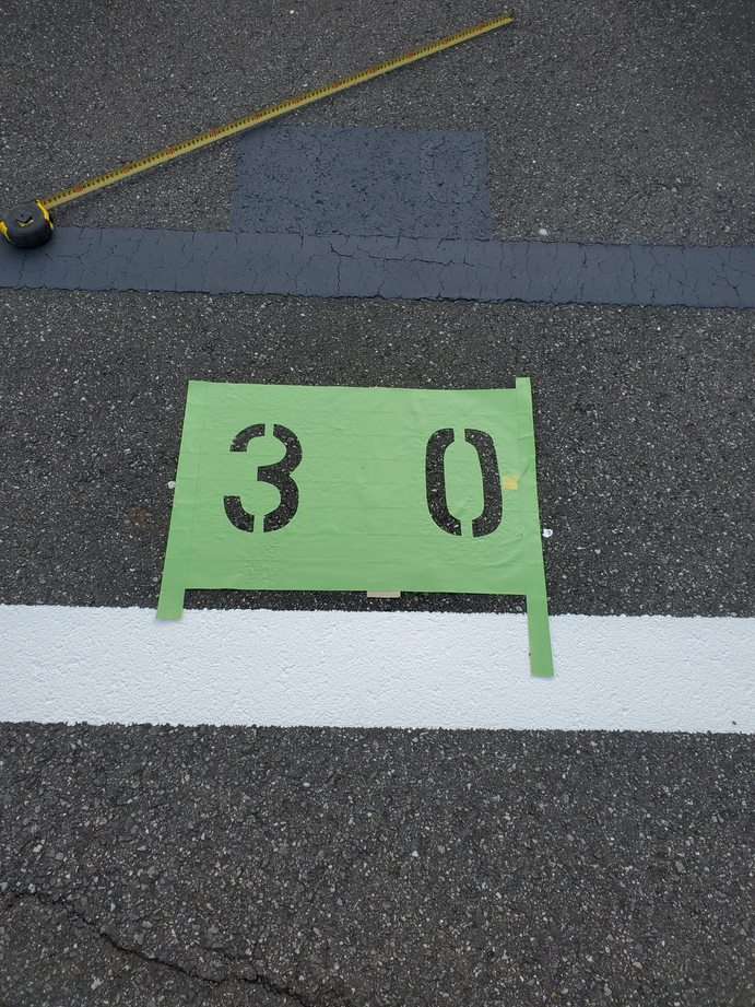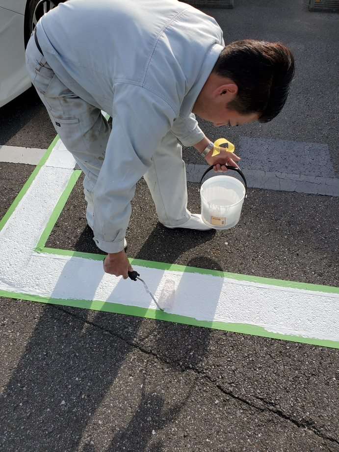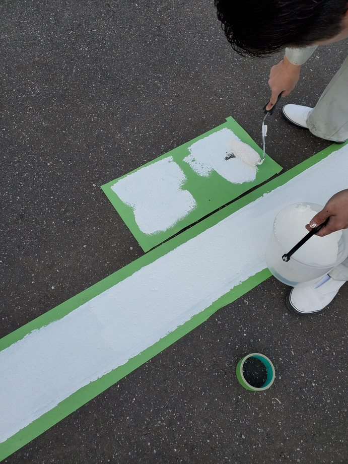 ゆうきホームに在籍している一級技能塗装士が道路線引き用塗料を塗っていきます!!