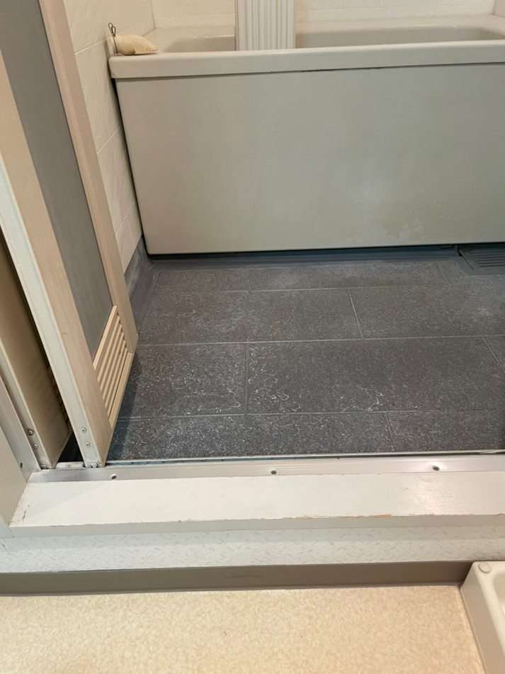 before 床には頑固な水垢が全体的に付着してますね。。