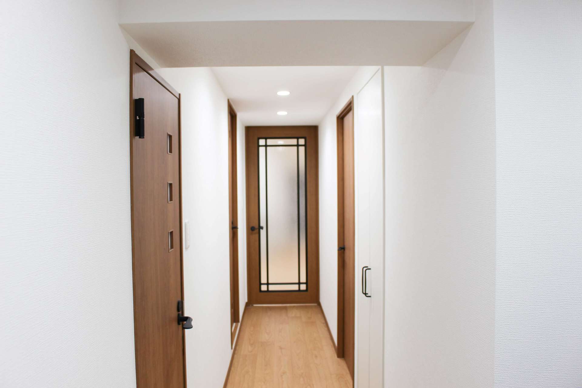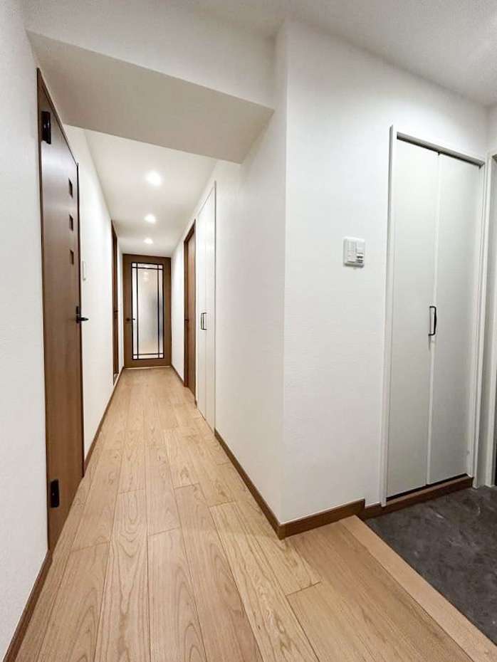 ベージュとブラウンの色合いが素敵な廊下です。