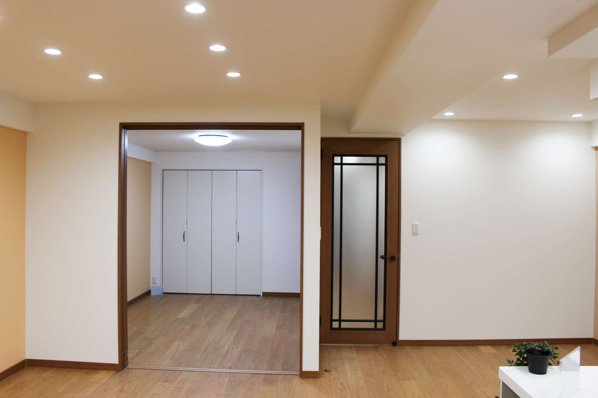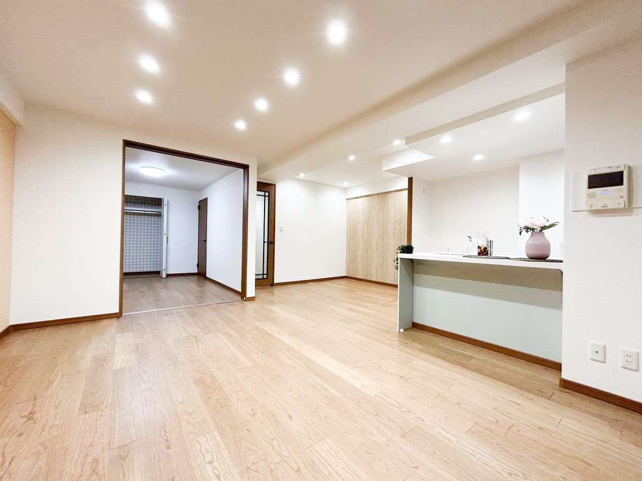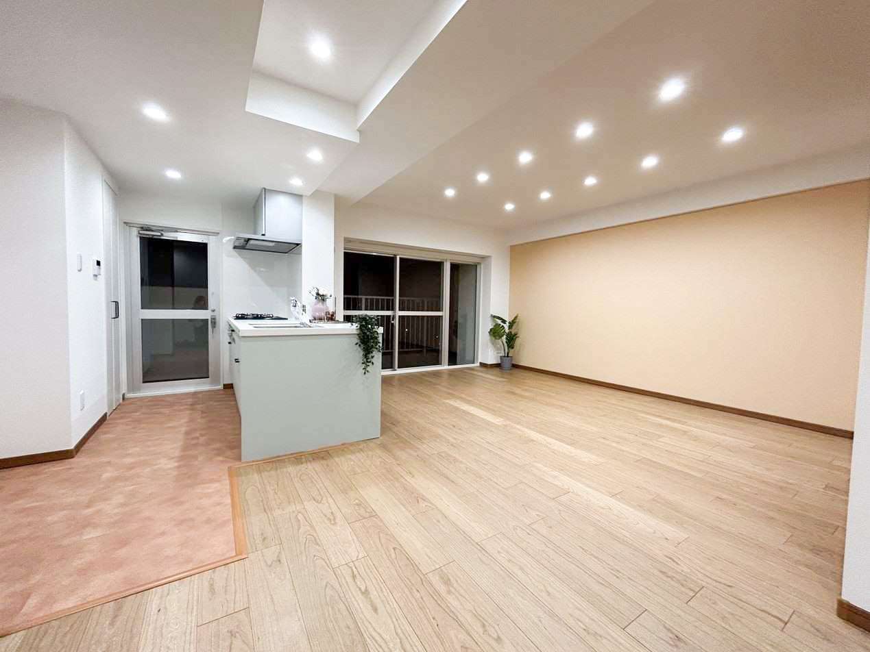 こちらのリビングはベージュのアクセントクロスの箇所は、もともと区切られていた別の部屋だったのですが