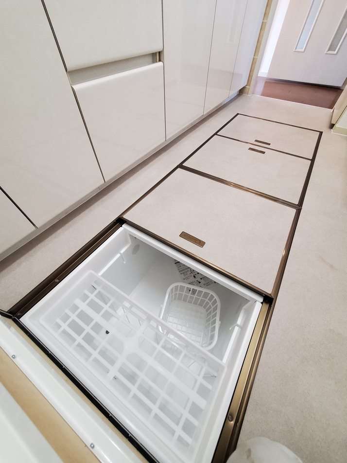 床下収納の枠をゴールドにしたことにより、高級感がより引き立ちます。