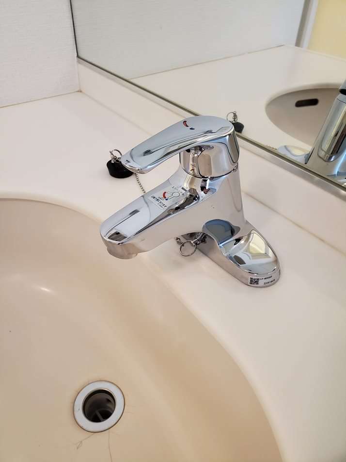 洗面台の水栓は新しいものにお取替え。