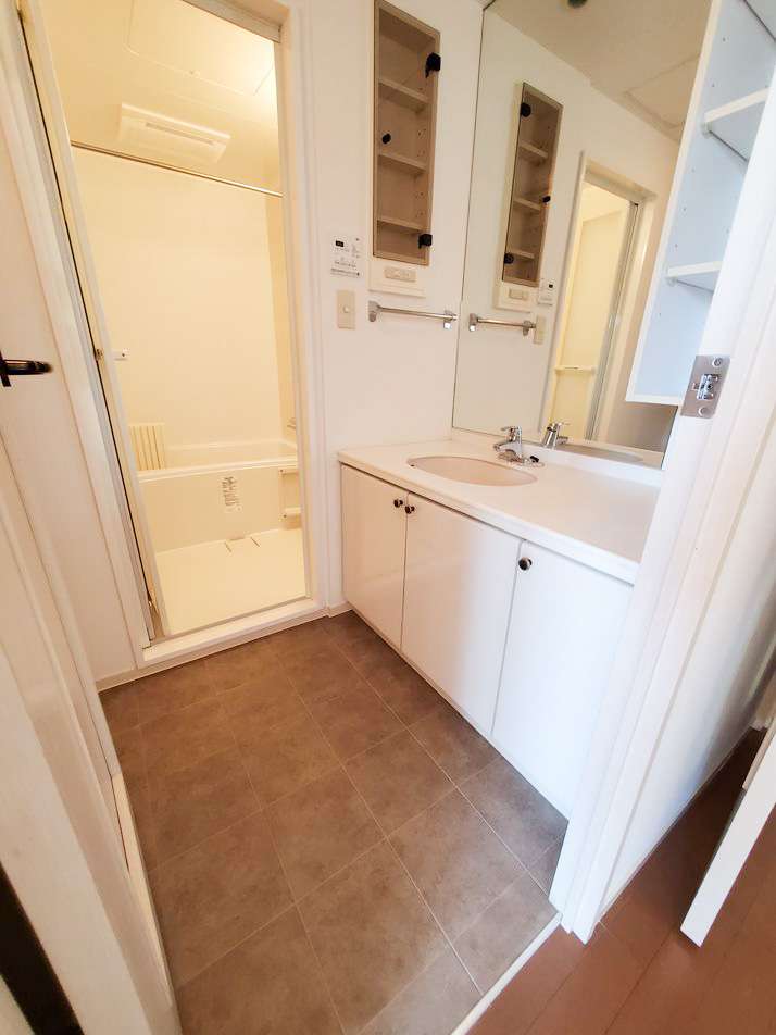 新築のようにキレイな洗面スペースですね。ゆうきホーム株式会社の原状回復工事素晴らしいですね。