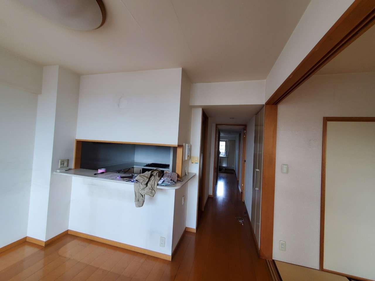対面リビング側の上吊り棚を全て無くし