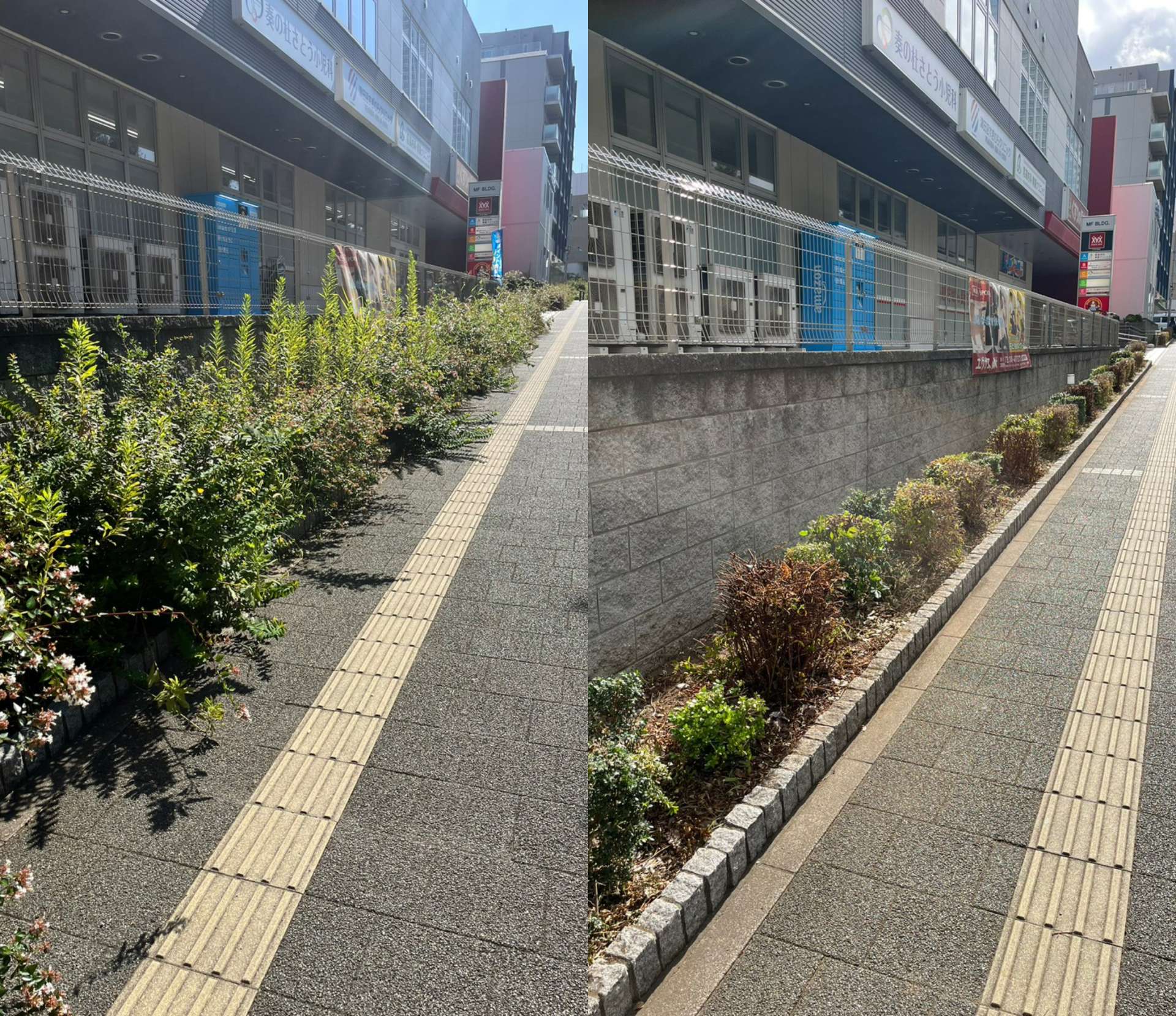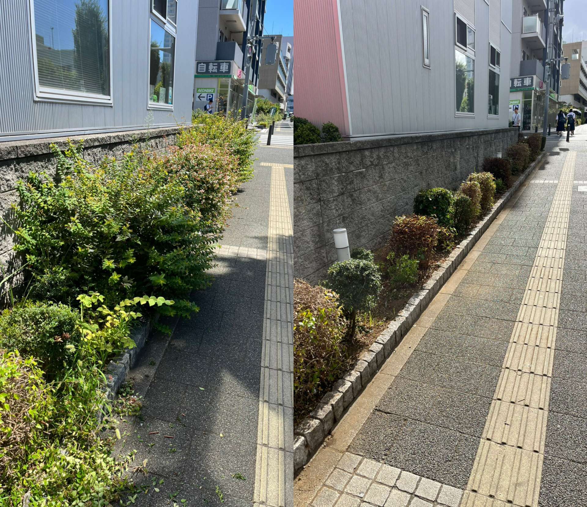 植木が元気に育ちすぎてしまい歩道まで伸びきっていた植木。