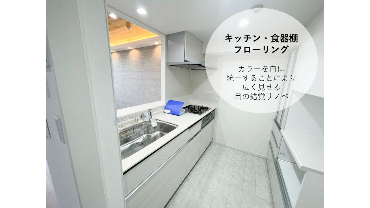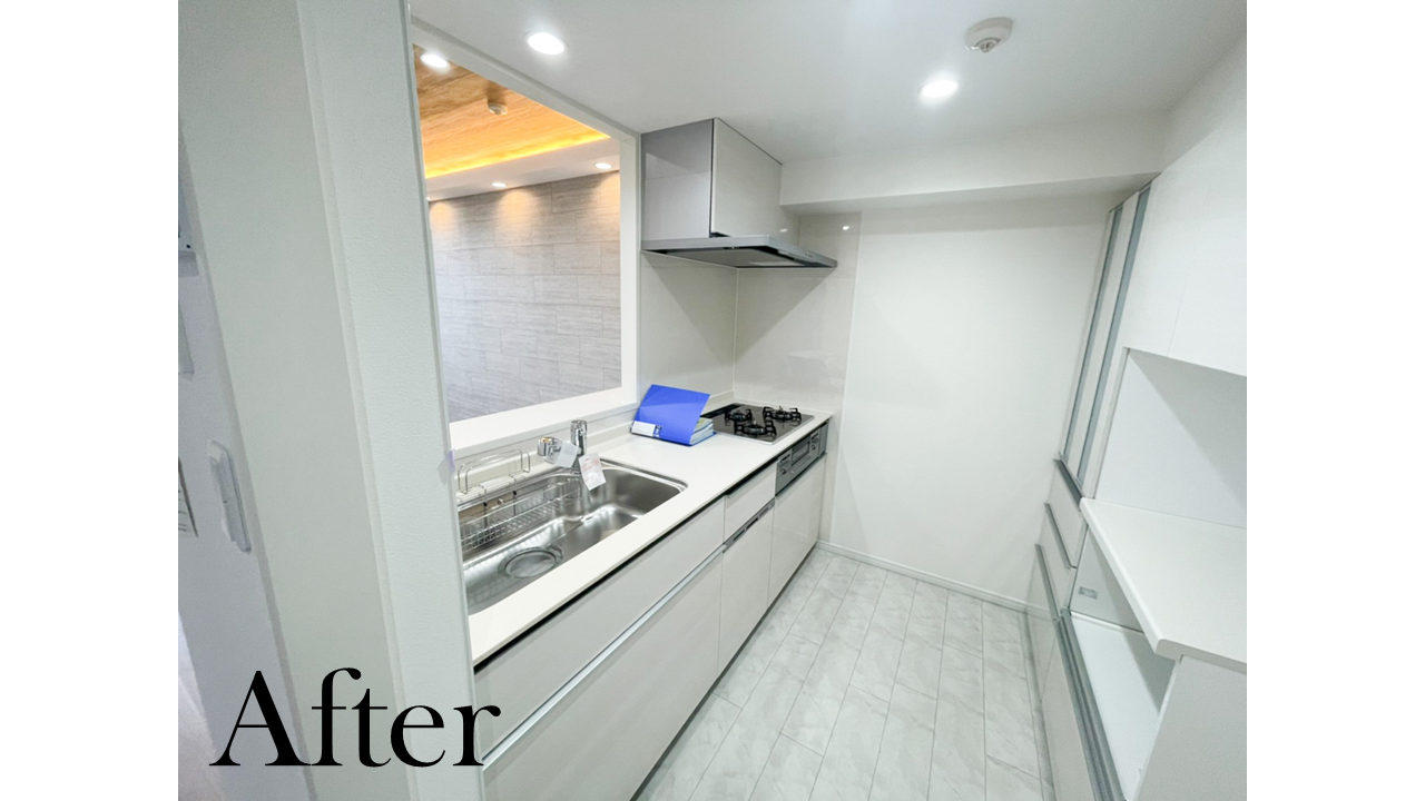 リビングから眺めるキッチンを見ても Before After では大きな差がありますね。