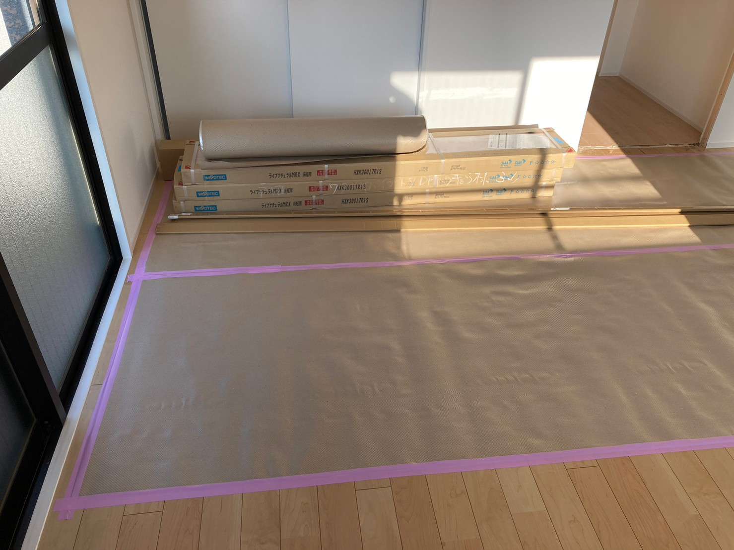 合板の捨張(フローリング下地)の施工とフローリング張り作業