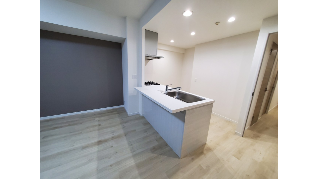 クールな濃いグレーをアクセントクロスにしてモダンテイストを演出することもできます。