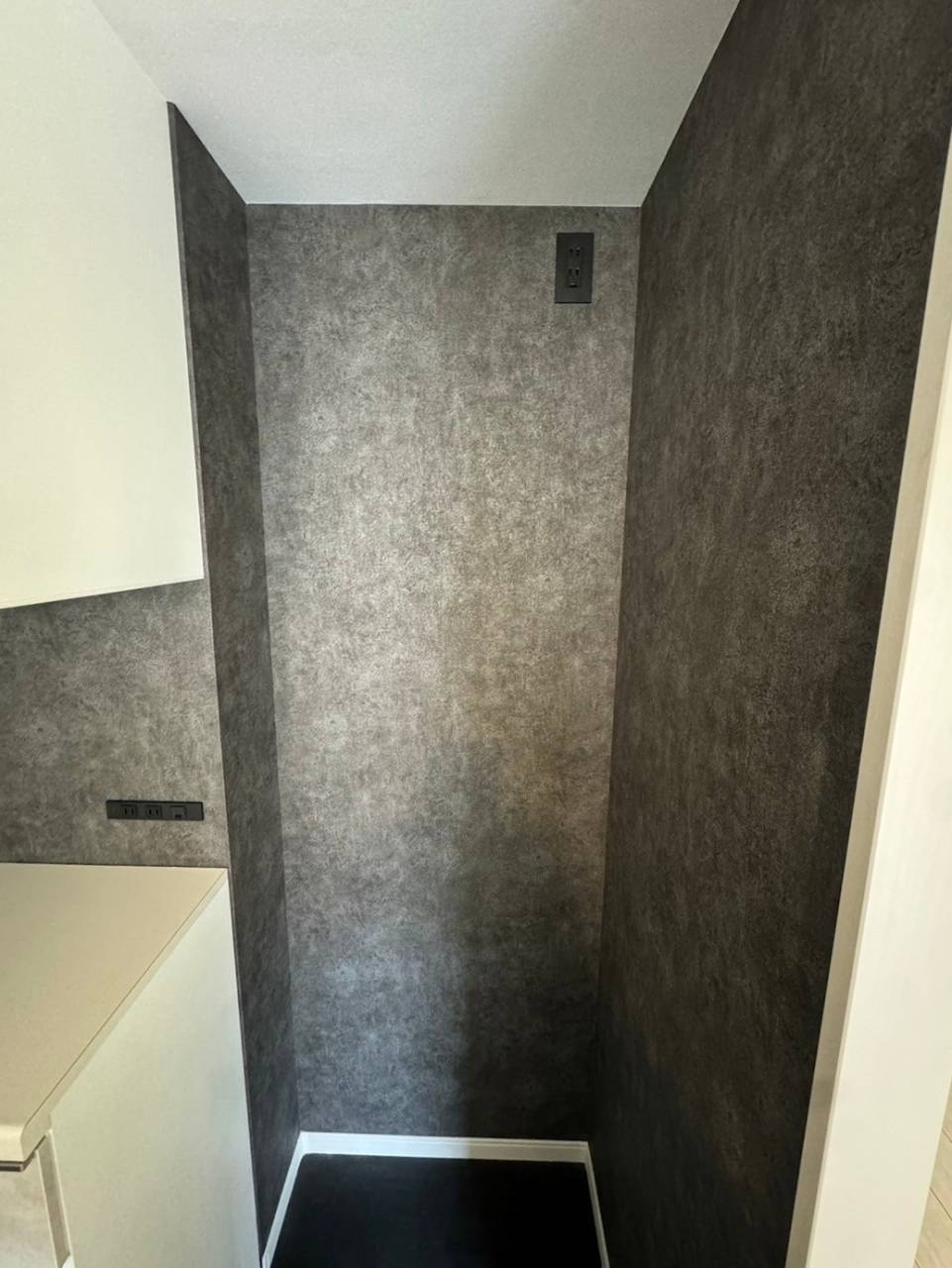 冷蔵庫用コンセントも黒でシックにカッコよく引き締まります。