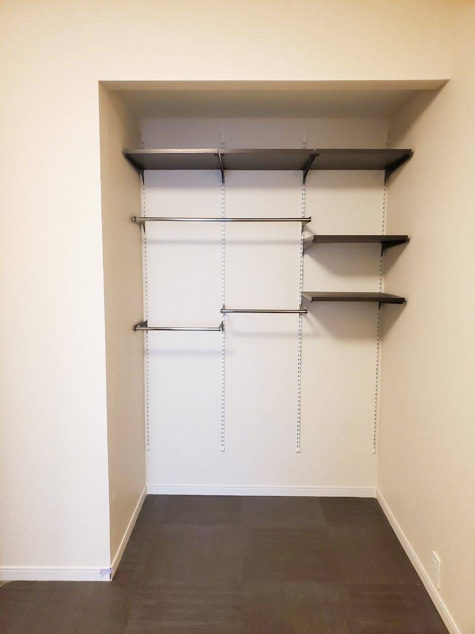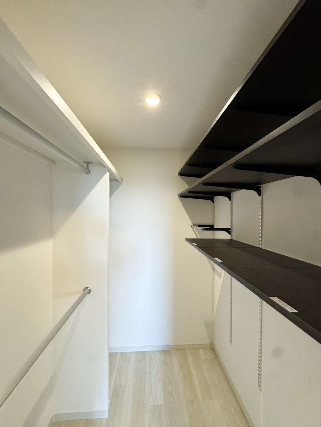 クローゼットの中は広々しています。左側はハンガーメイン、右側は可動棚。こちらもお客様のオーダーメイドで施工しました。