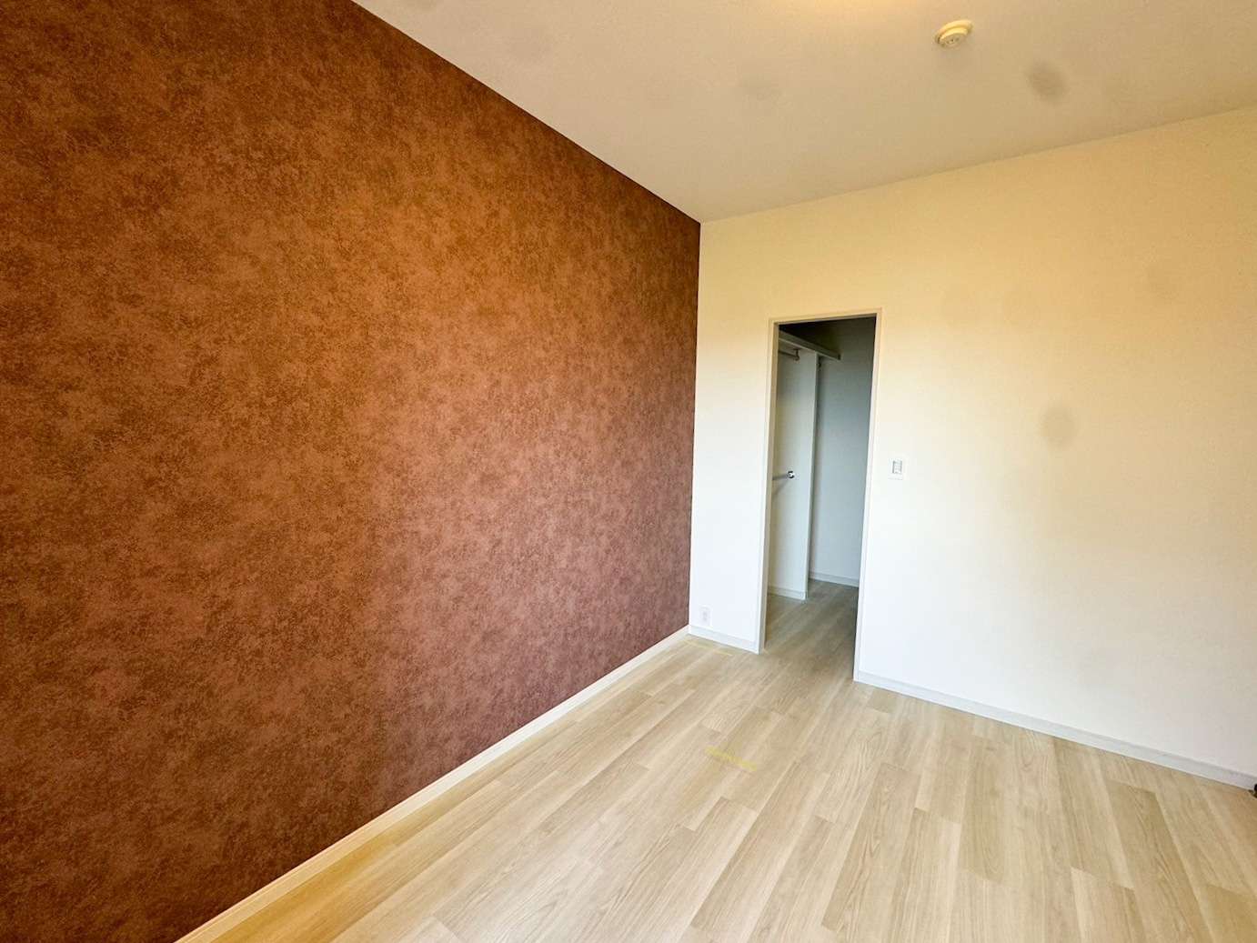ブラウンのアクセントクロスは、明るさによって印象が異なります。