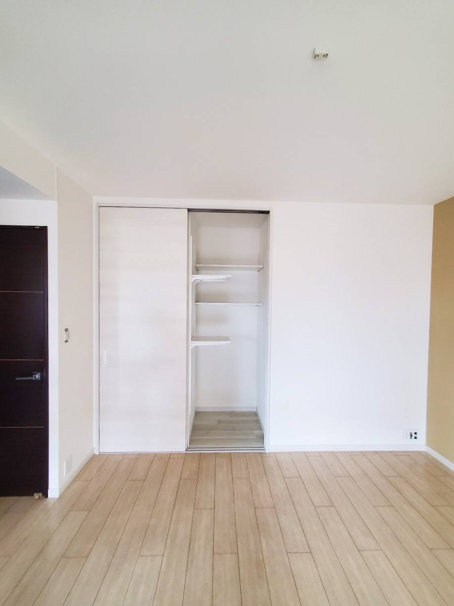 リビング収納の中のフローリングはもちろんハウスクリーニング済で収納内も壁紙を張り替えております。