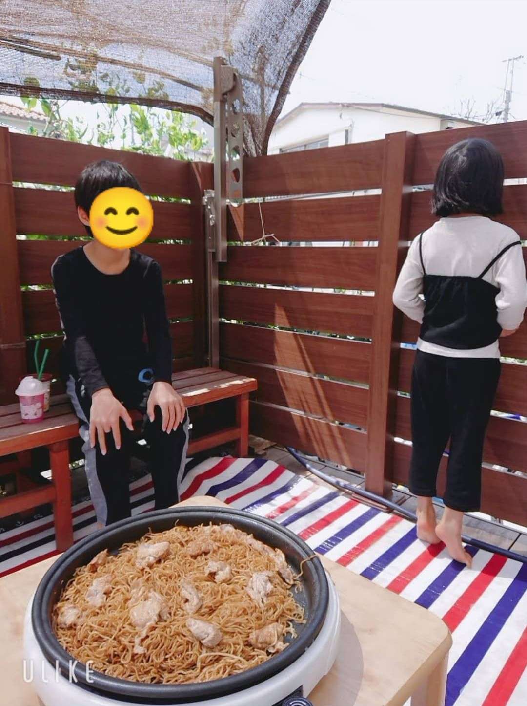 学校や幼稚園が午前中までの時や、土日祝日、GWなどのお休みのお昼ご飯はウッドデッキにホットプレートを出してお昼ご飯をすることもあるそうです♪
