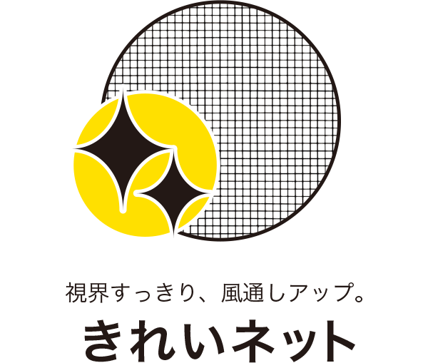 人やペットに安心な薬剤を練り込んだ、虫がとどまりにくい網戸。出入りの多い物干しスペースの窓などにおすすめです。