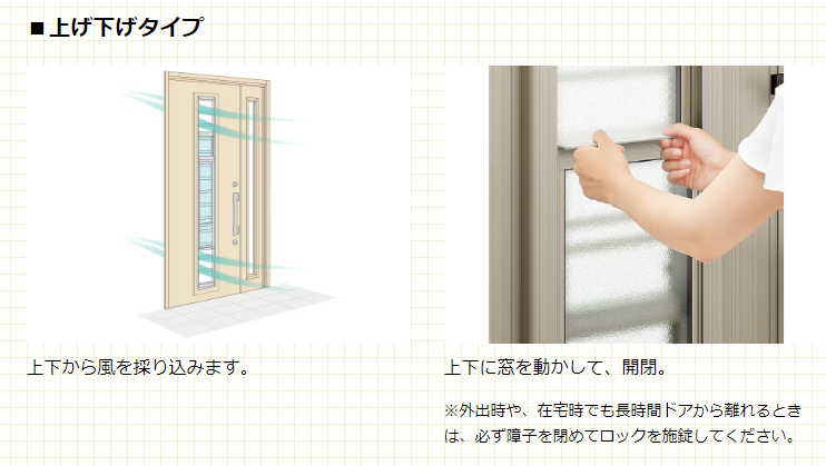 採風玄関ドアとは、開閉できる窓付きのドアのことです。