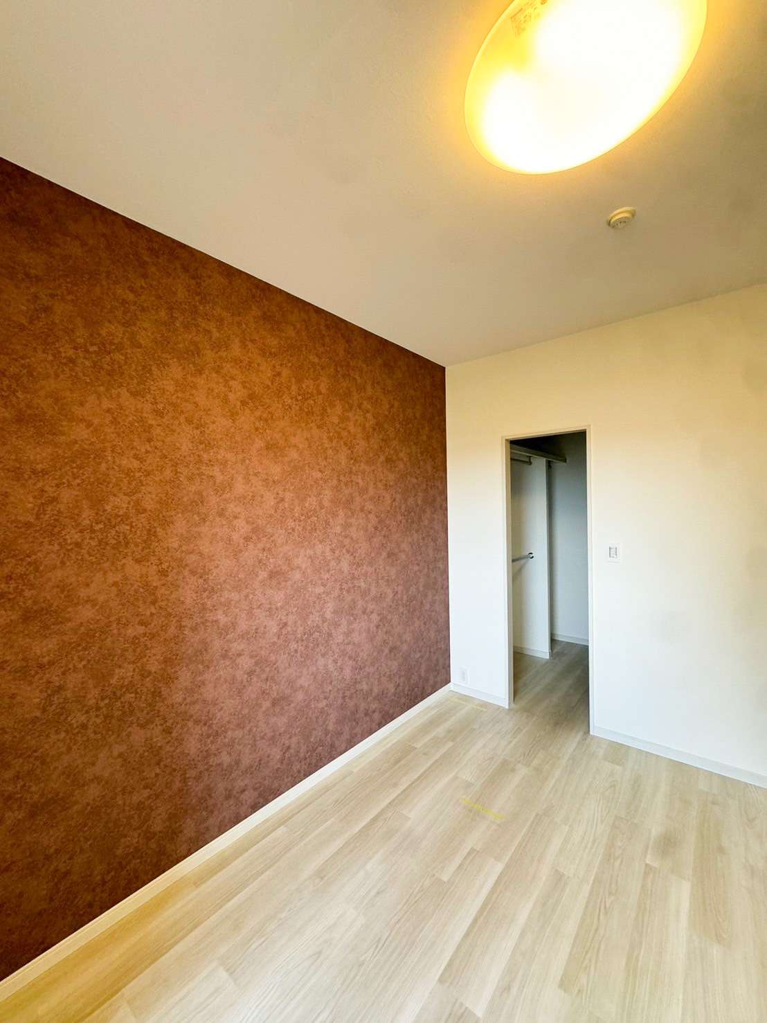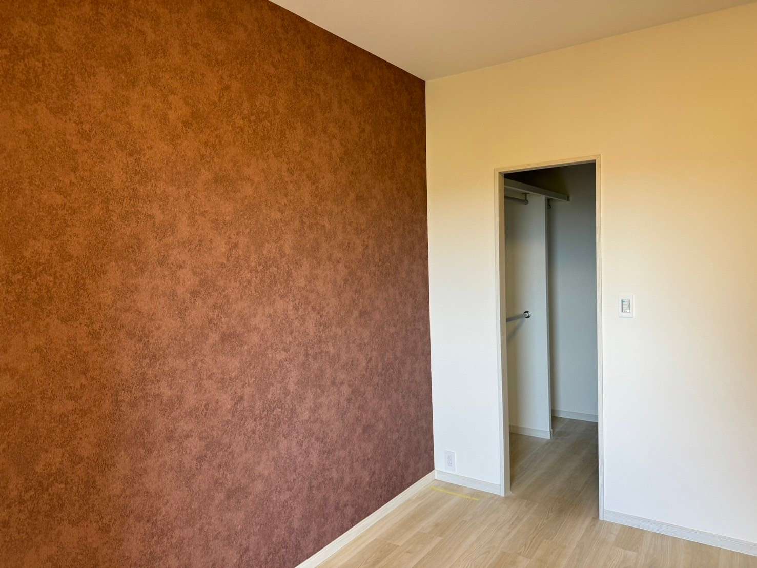ブラウンのアクセントクロスは、明るさによって印象が異なります。