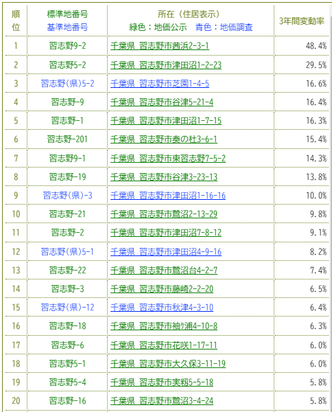 習志野市 地価ランキング(令和6年地価公示&令和5年地価調査)