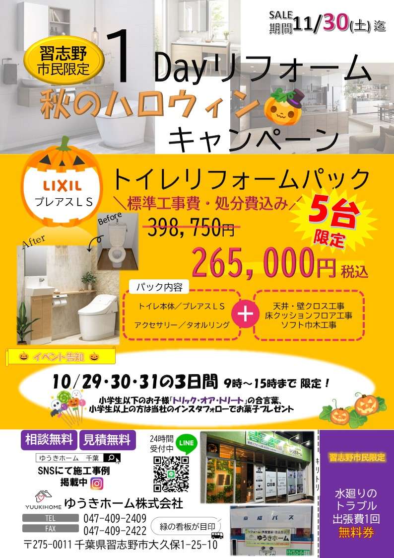 習志野市民限定 1Dayリフォーム 秋の ハロウィンキャンペーン