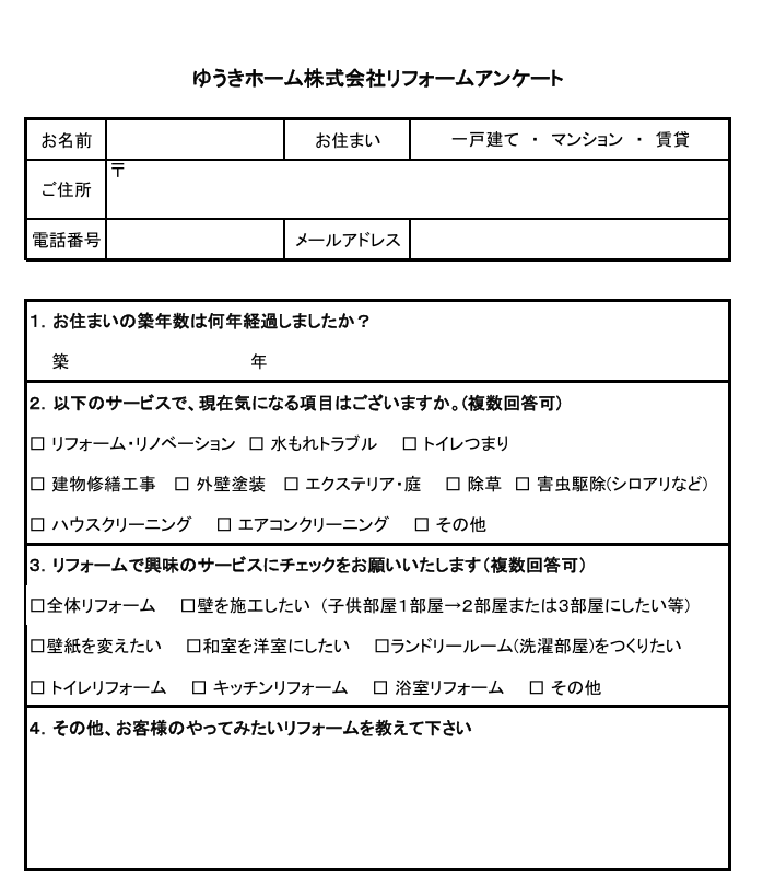 リフォーム、リノベーション ご希望のお客様、是非 ゆうきホーム株式会社 までご相談ください。ご来店ご連絡お待ちしております。