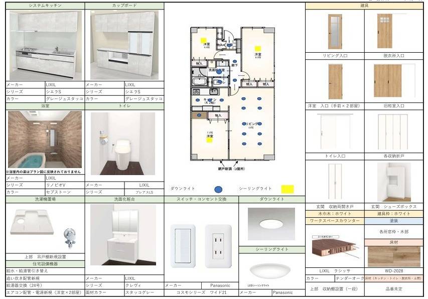 ゆうきホーム株式会社では、リフォーム、リノベーションの際に、壁紙クロスやフロアタイル、電気などのダウンライトの位置から