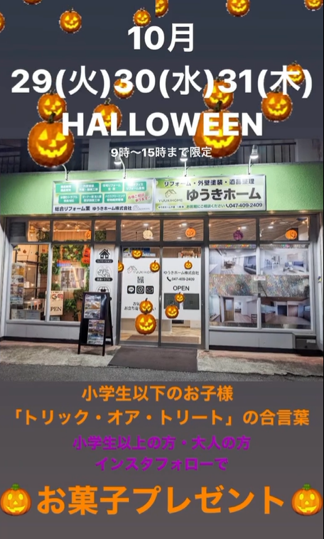 ハロウィンイベント まで あと4日! 千葉 習志野市 ゆうきホーム株式会社 リフォーム