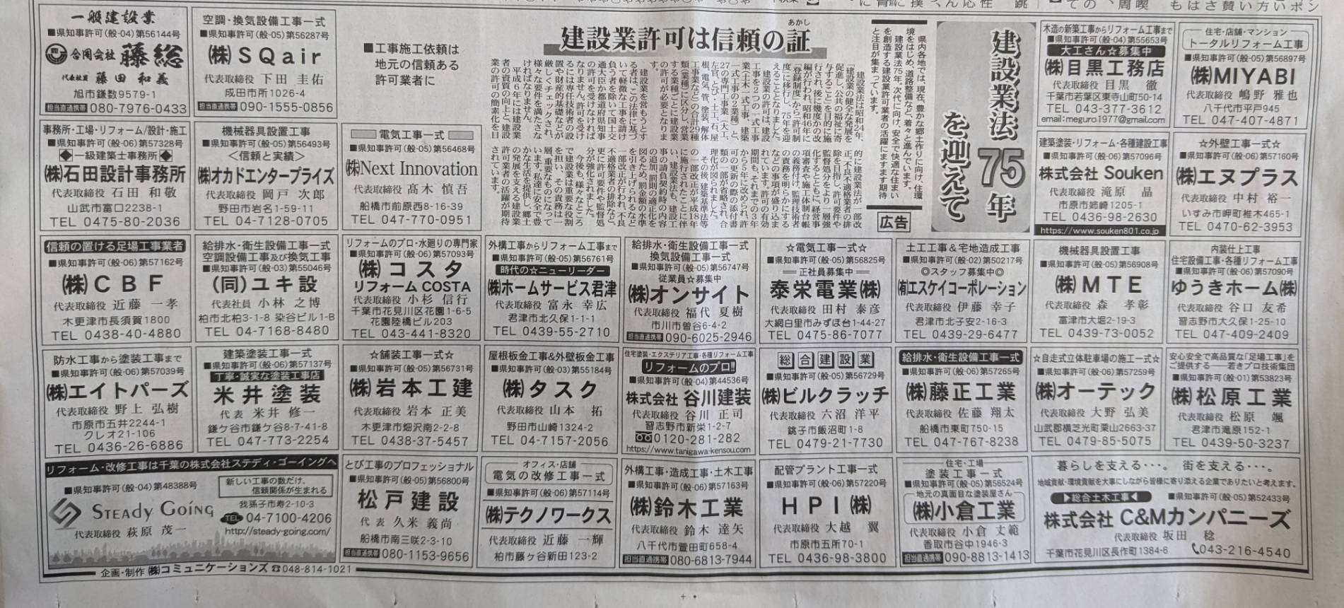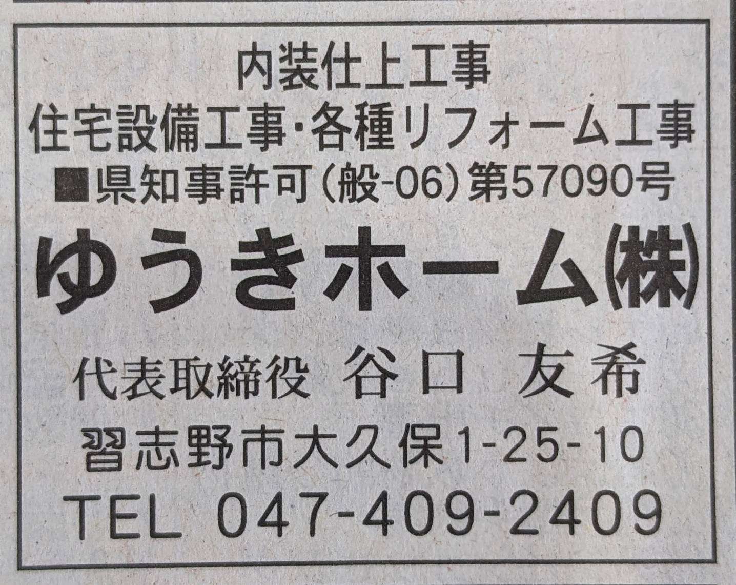 建設業許可は信頼の証 毎日新聞 ゆうきホーム株式会社 掲載していただきました 千葉 習志野市 リフォーム会社