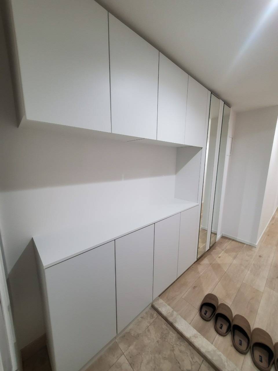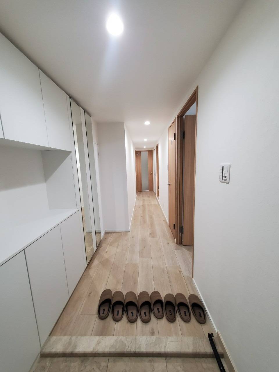玄関が狭くて悩まれているお客様は大きな鏡を付けるだけでも、空間がガラリと生まれ変わるので、玄関前の天井高鏡または、大きな鏡は本当におすすめです。