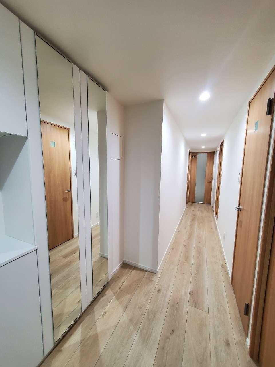 ビフォーアフターで比べてみると全体的に暗い空間だった廊下が、明るく広々とした空間に生まれ変わり、大容量の収納も新しくリノベーションいたしましたので是非ご覧ください。