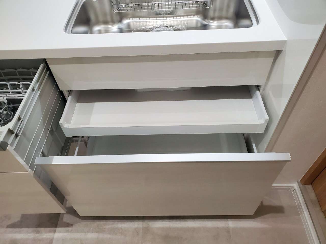 調理台の下に収納されているタイプの為 シンク周りに食器乾燥ラックを置かなくてよくなり、
