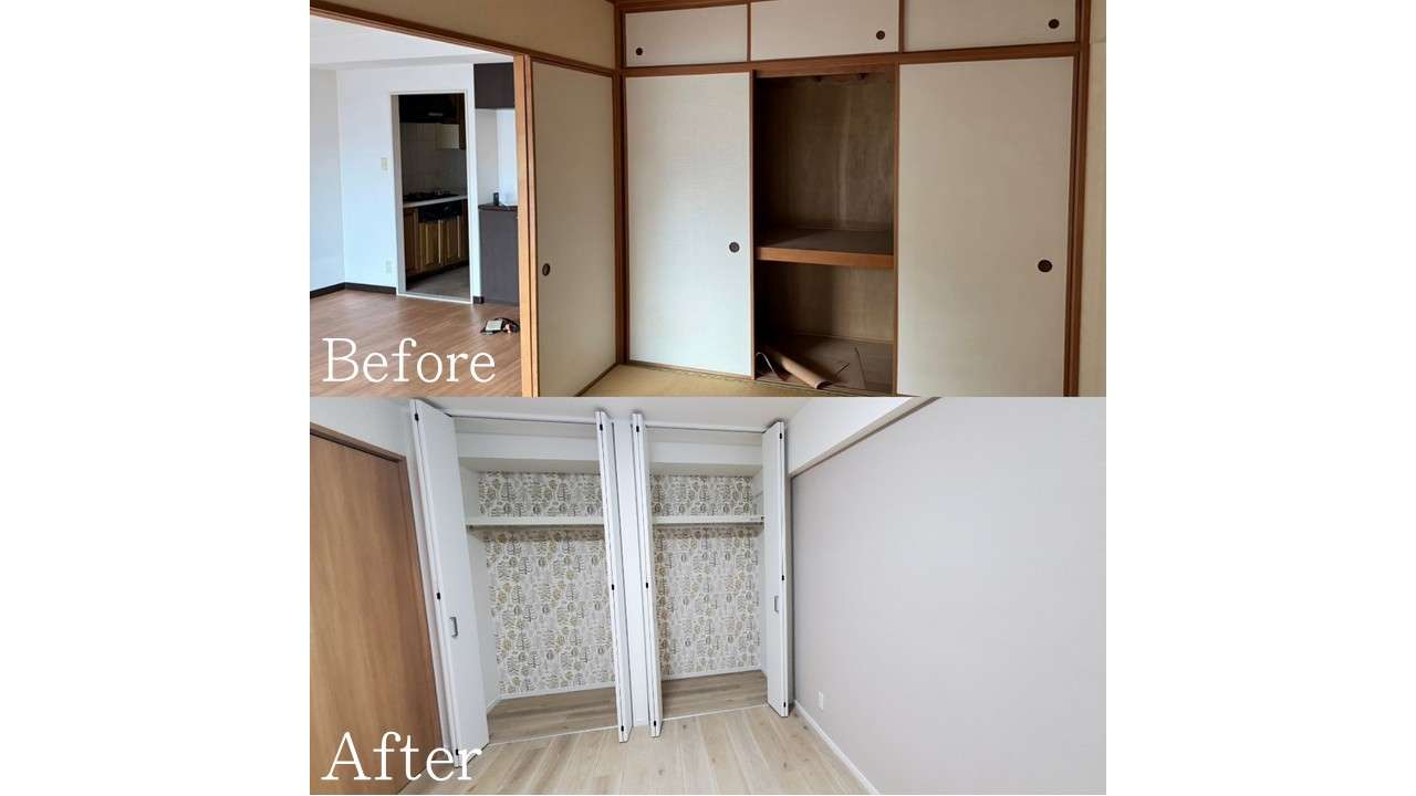 お部屋の奥に位置する収納のビフォーアフターです。