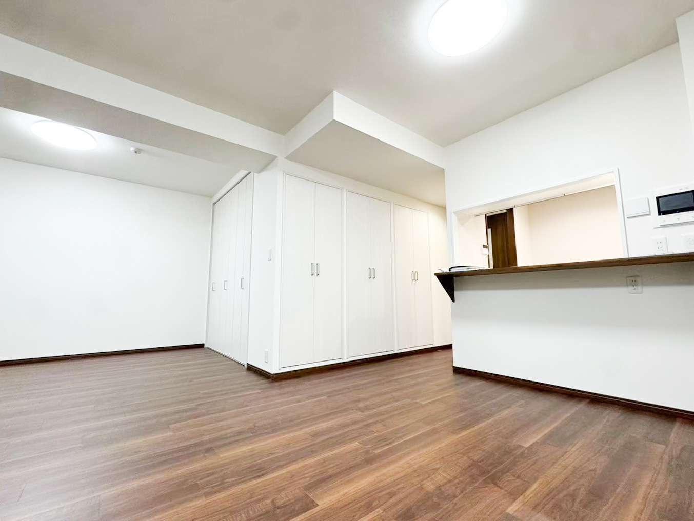 キッチンカウンターや建具もフローリングに合わせることで統一感があり、あえてシンプルなデザインにすることで 家具の配置やカーテンなど どんな色や柄にも合わせやすくなります。