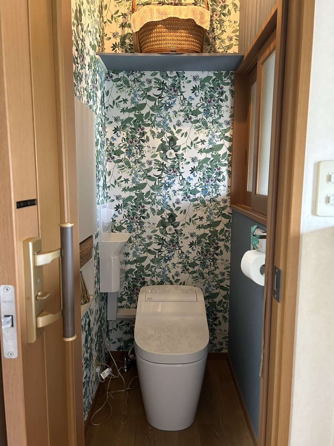 大胆な花柄のクロスはトイレだからこそ思い切って挑戦できますよね。