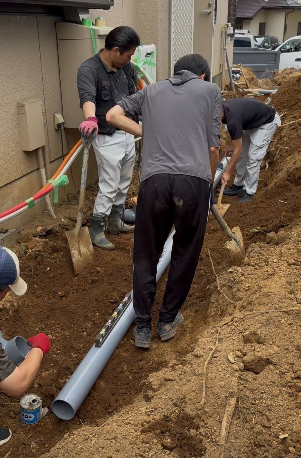 掃除、ゴミ捨て、建築に触れることはもちろん、土木作業も頑張りましたね。配管工事、勾配の大切さで水の流れが変わったり、詰まりにくくする工夫など、たくさん学びましたね。