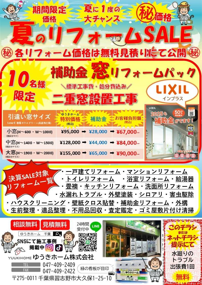 夏リフォームセール チラシ ゆうきホーム株式会社 千葉県船橋市