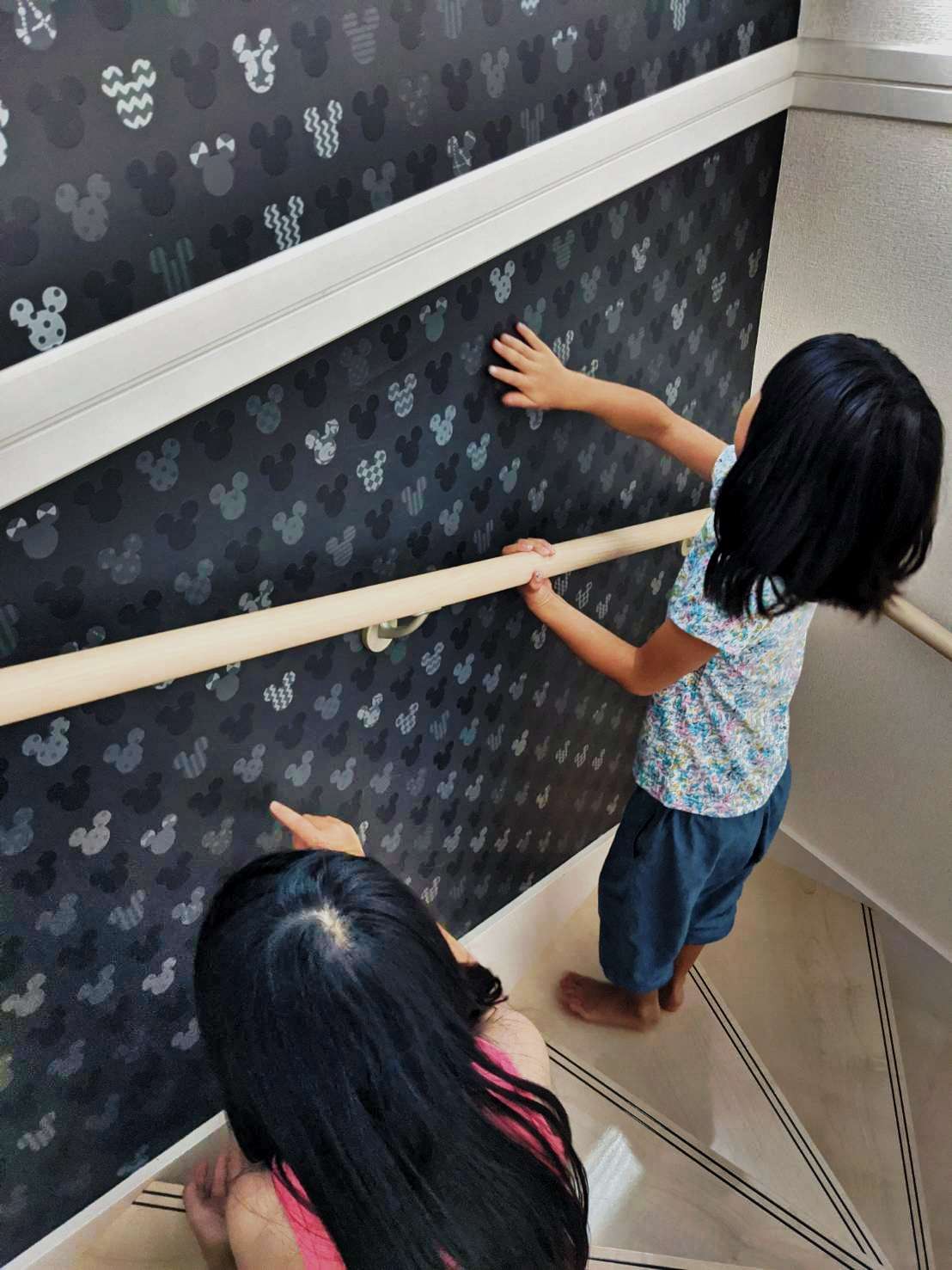 ゆうきホーム株式会社が隠れミッキーが探せるディズニー壁紙クロスを階段のアクセントクロスとして提案。