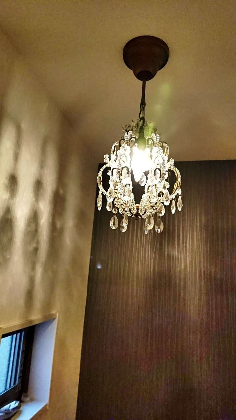 光の陰影: シャンデリアから放たれる光が壁面に複雑な模様を映し出し、まるでアートを飾っているかのようなドラマチックな表情を作り出します。