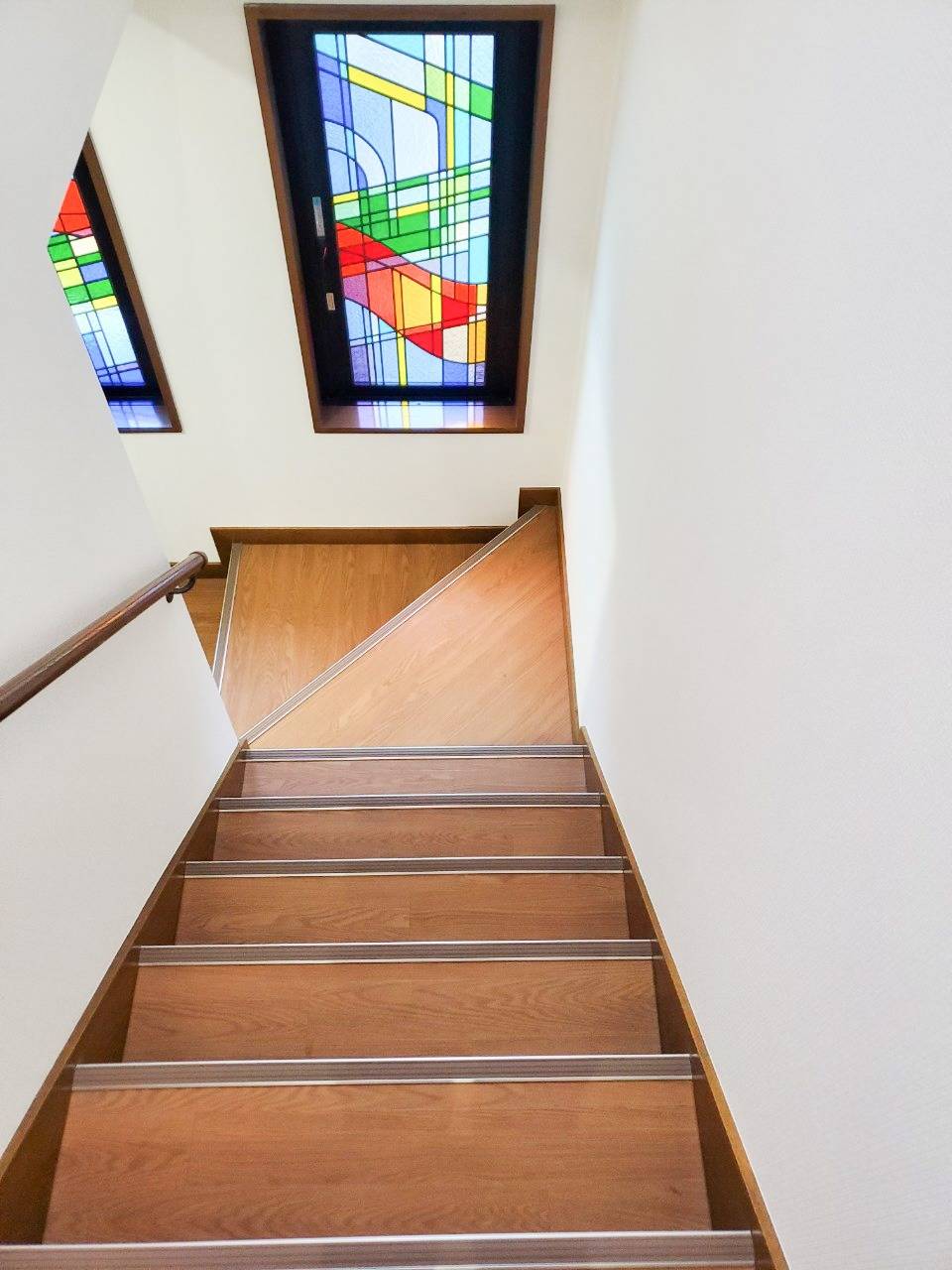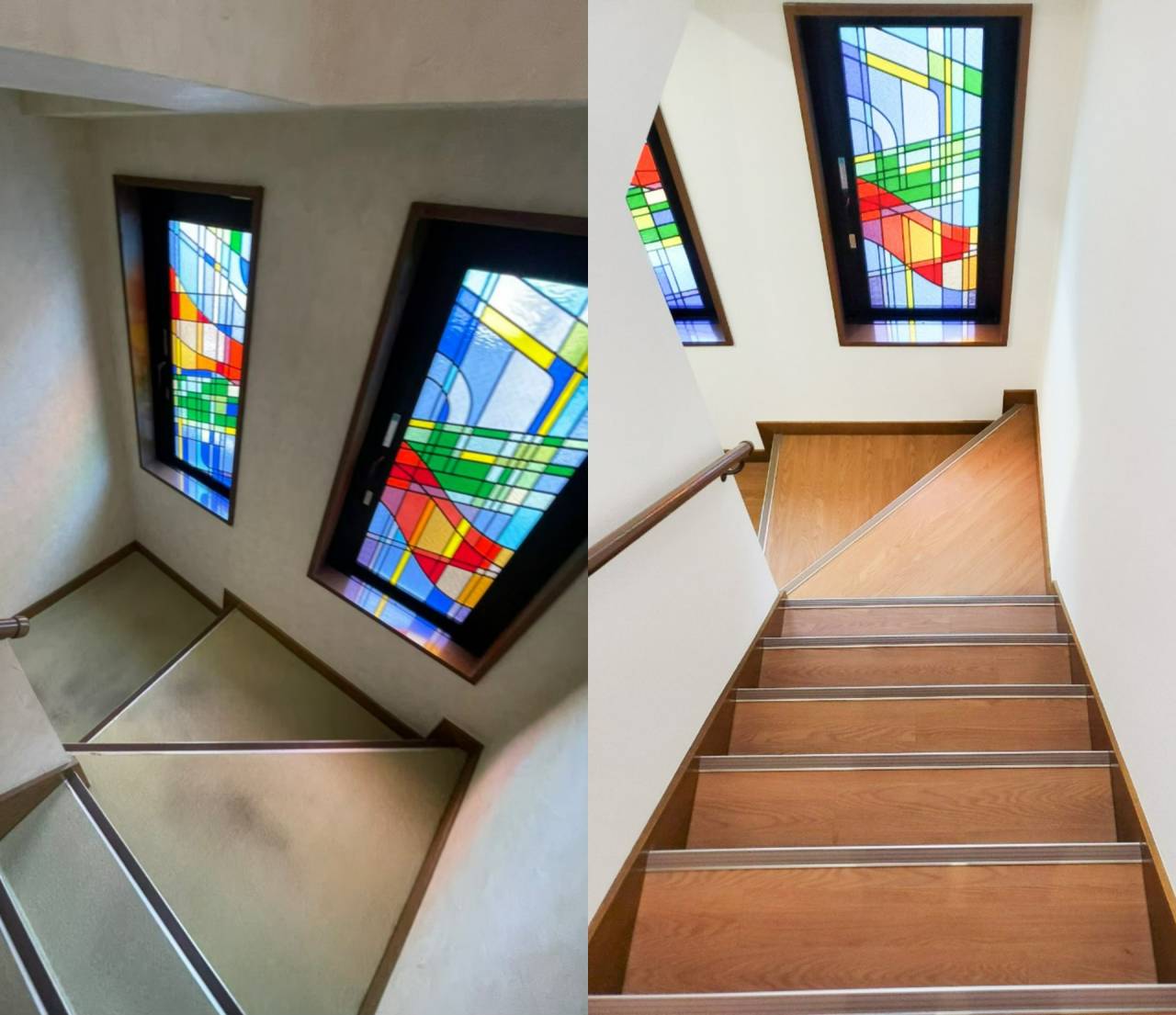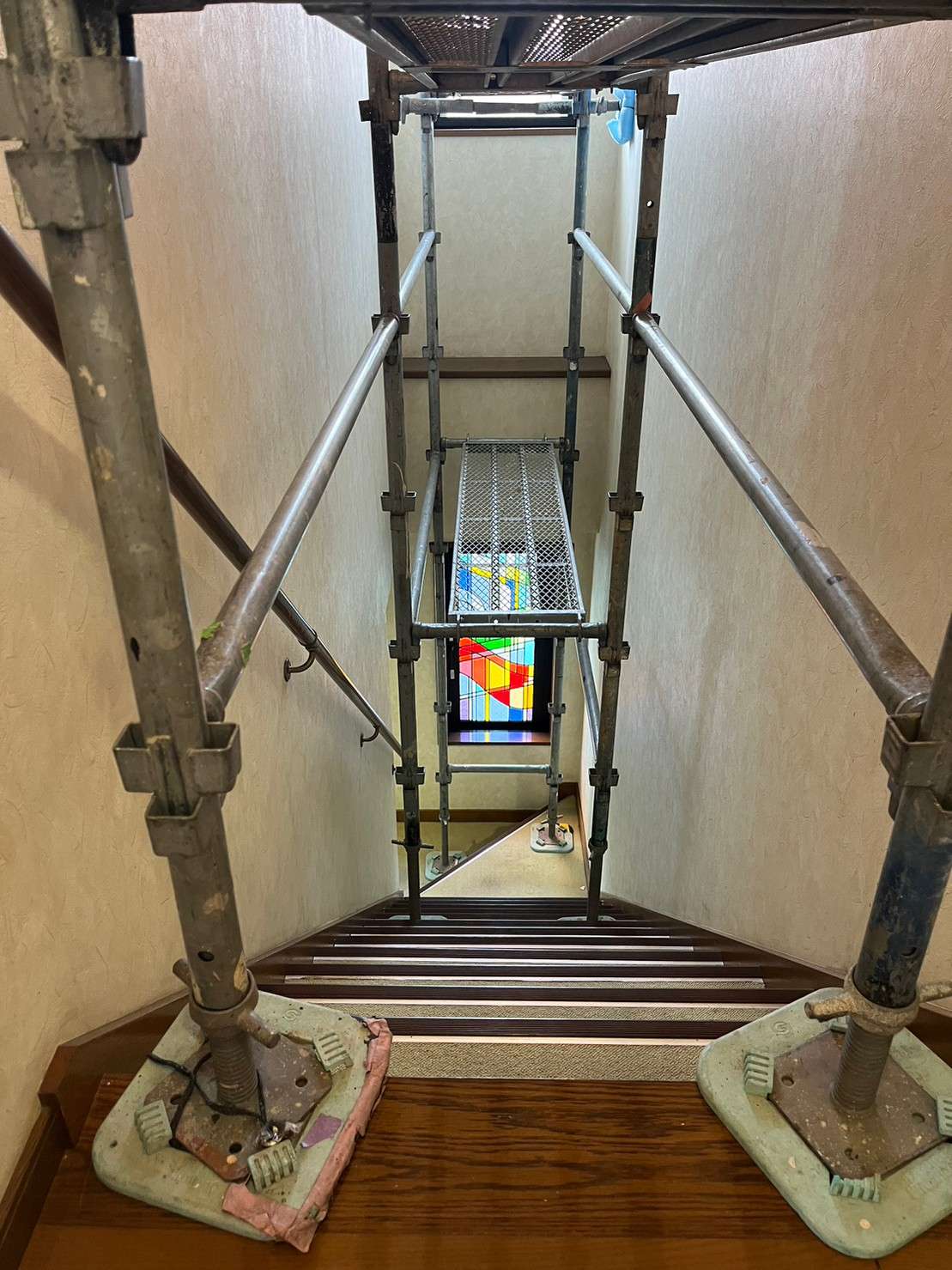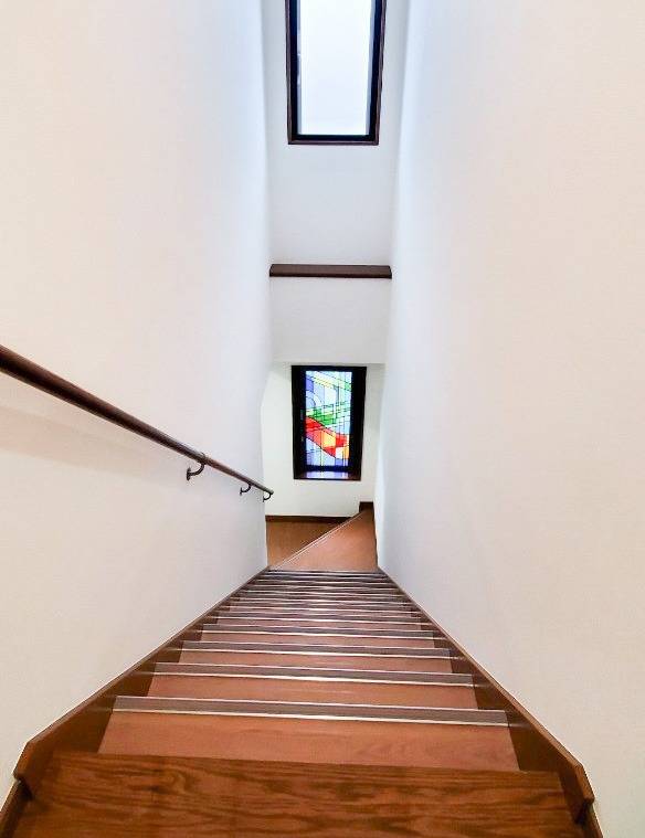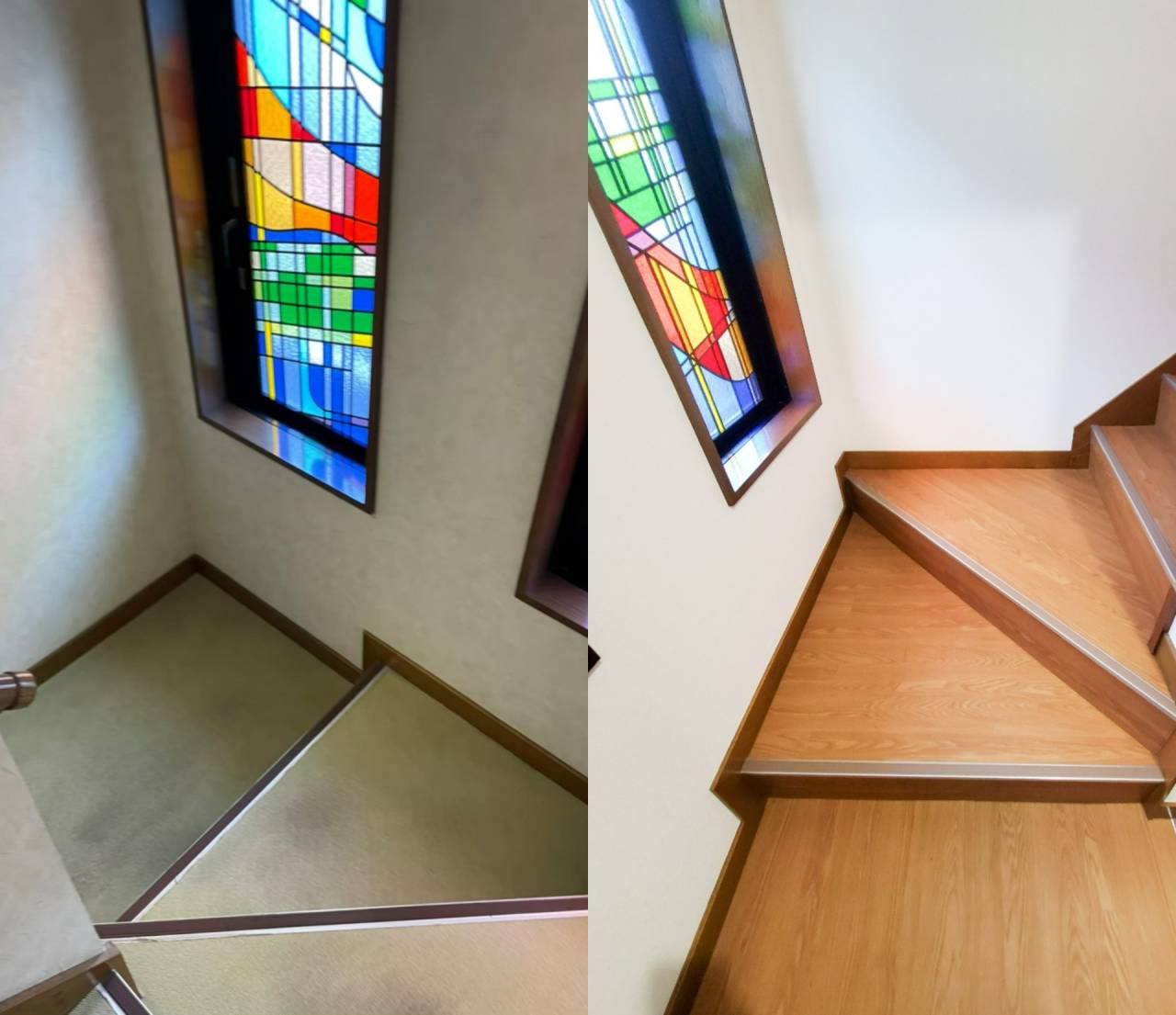 おしゃれなステンドグラス窓のある階段の原状回復工事を承ってまいりました。