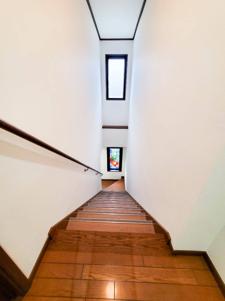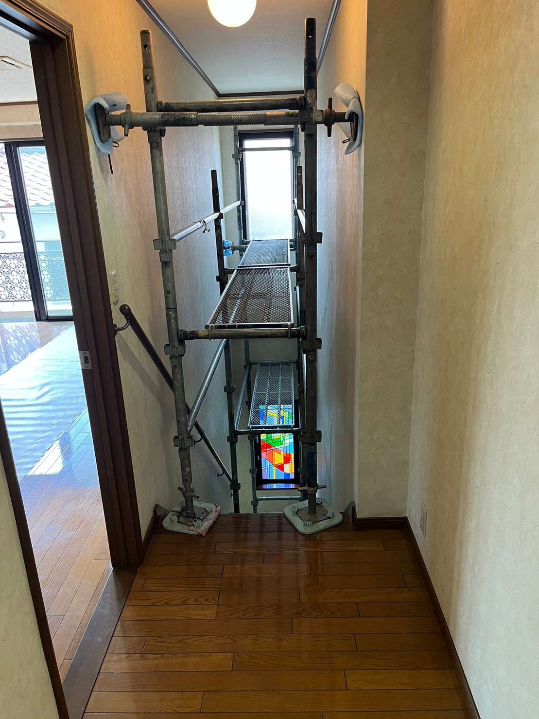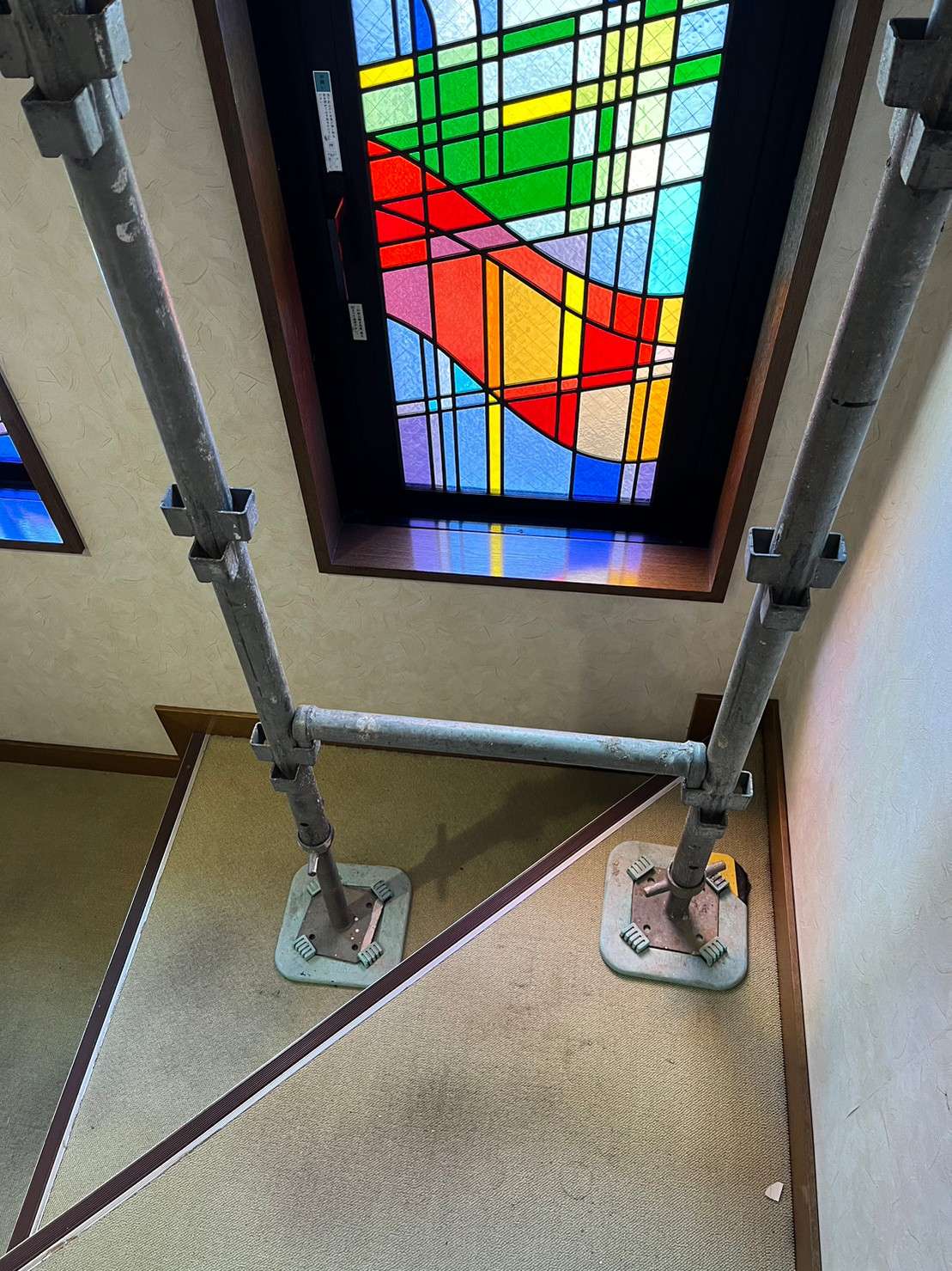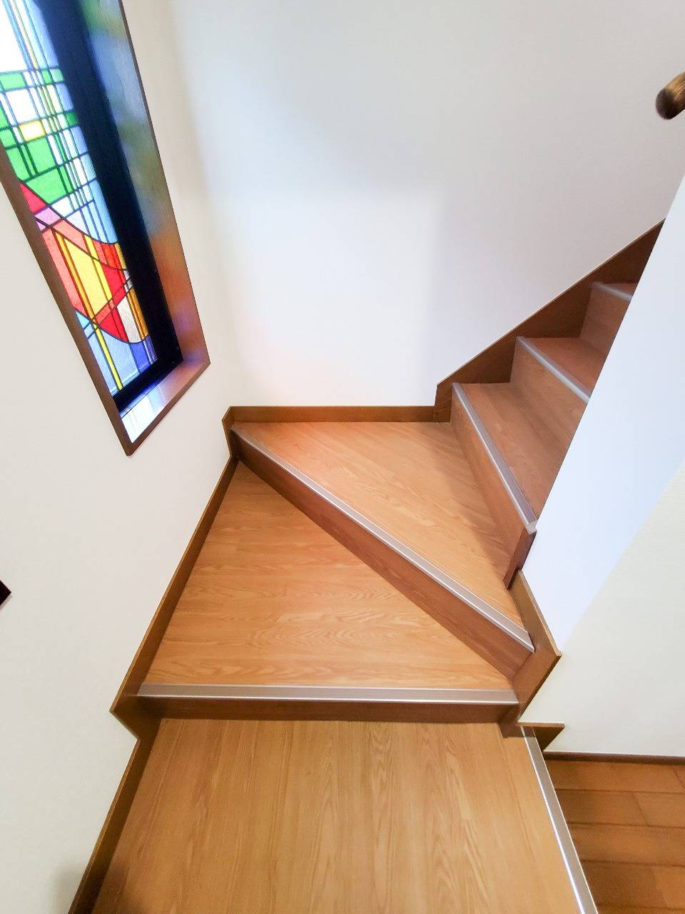おしゃれなステンドグラス窓のある階段の原状回復工事を承ってまいりました。