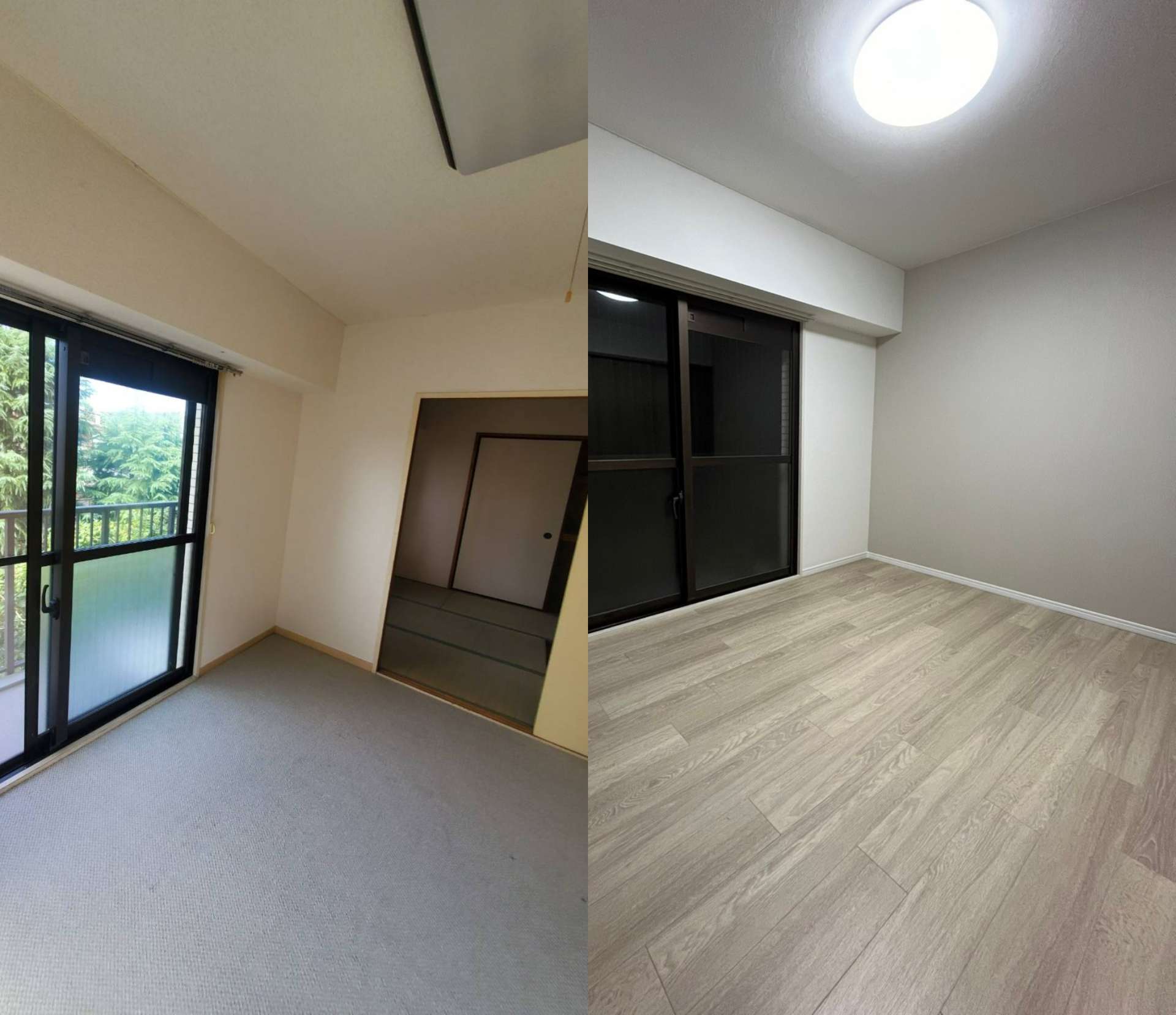 こちらの物件はもともと洋室と和室に分かれていて間に引き戸の仕切りがありました。