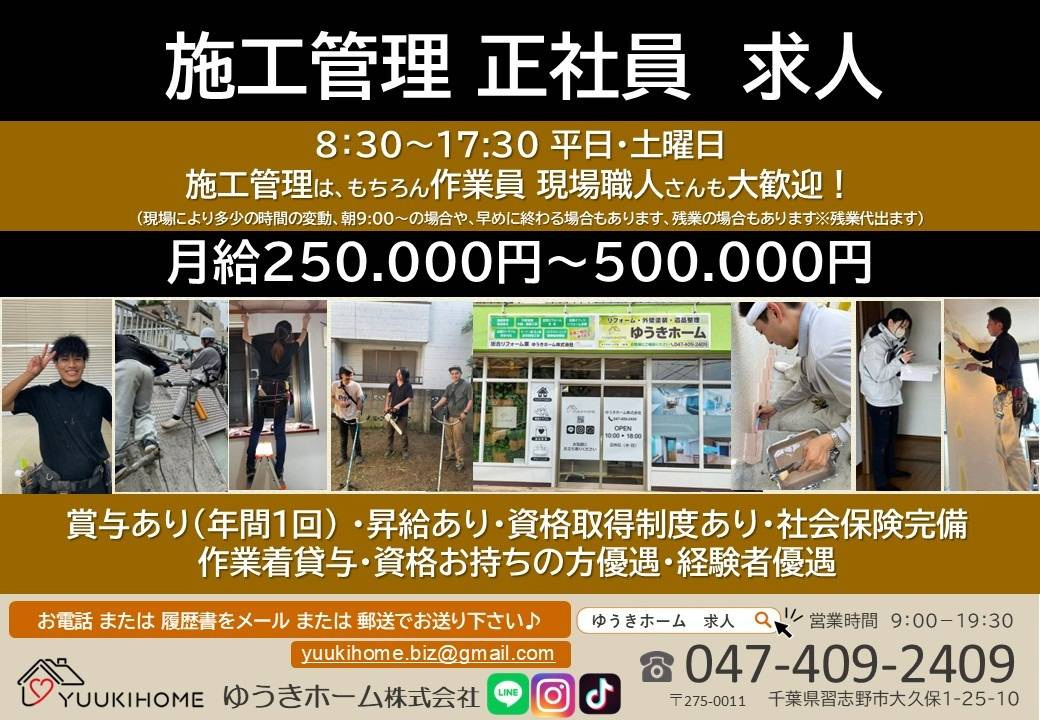 土曜日勤務 !! 平日19:30まで 出勤できる方 大歓迎 !! 勤務地:ゆうきホーム株式会社 テナント 時給1150円~ 平日 13:00~19:30 土曜 10:30~19:30 ※資格取得制度あり 徒歩・自転車通勤 大歓迎!! 交通費全額支給 【最寄駅】 京成大久保駅 (事務所) □学歴・年齢・資格 20代、30代 在籍中 ♪ 経験者歓迎 第二新卒歓迎 ~ゆうきホーム株式会社は人柄を重視しております~ ・チームワークを大切にできる方! ・未経験でもやる気のある方! ・資格・経験を活かしたい方! ・キャリアアップしたい方! ・長期就業をご希望の方! ・頑張り次第で報酬を上げたい方! ・学歴不問 人柄を重視いたします! ・事務仕事パソコンできる方 大歓迎! ・リフォームに興味のある方 キャリアアップしたい方 大歓迎! 【応募方法】 履歴書送付メール・郵送・FAX または お電話にてお気軽にご応募下さい(^^)/