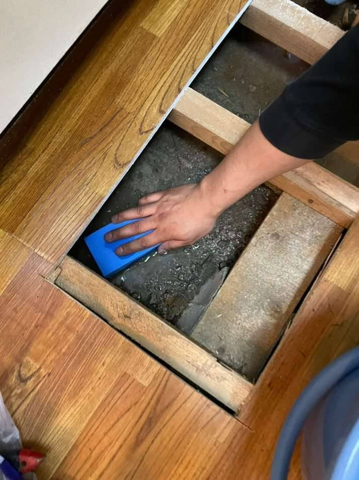 そこで行うのが、スポンジや吸水性の高い雑巾を使った地道な吸水作業です。この工程は非常に時間と労力がかかりますが、床下の状態を健全に保つためには欠かせません。スポンジを押し当てて水を吸い上げ、絞っては繰り返す――まさに根気のいる作業ですが、これを丁寧に行うことで後の乾燥工程の効率が大きく変わります。