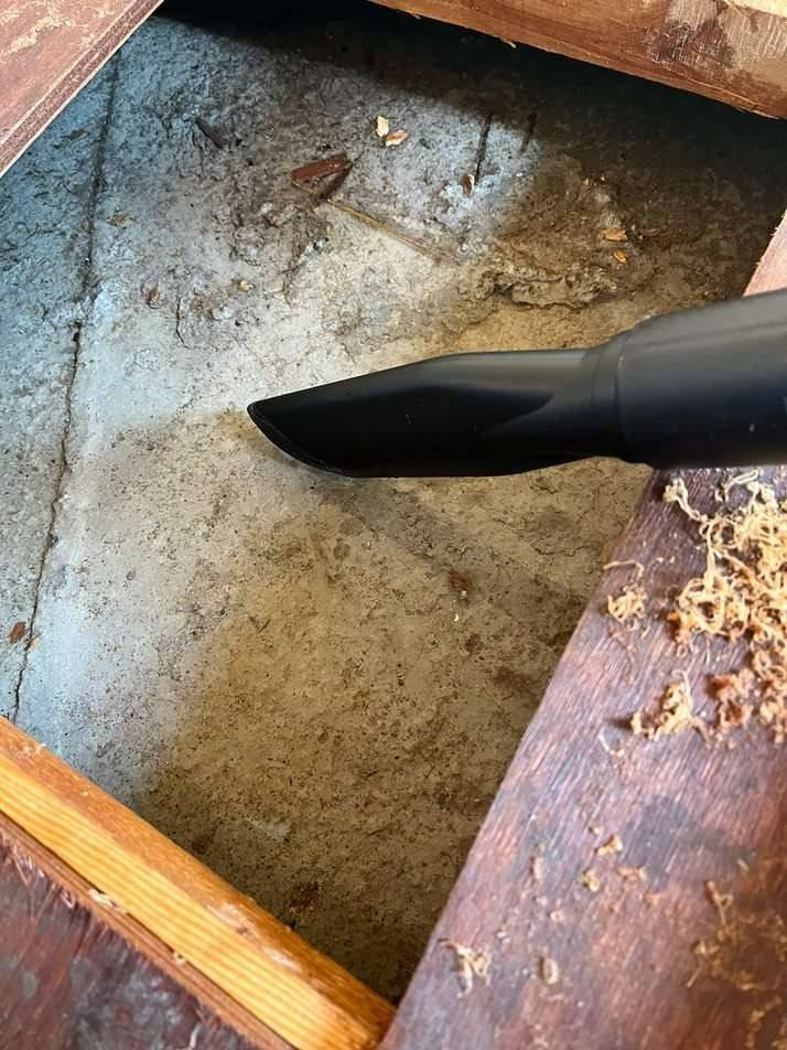 今回の現場では業務用のバキュームクリーナーを使用し、床下全体を丁寧に吸引しました。家庭用掃除機でもある程度は対応可能ですが、泥や水分を多く含むため内部がすぐに詰まってしまうリスクがあります。業務用バキュームは水や泥も同時に吸い取れるため、効率と安全性が格段に上がります。
