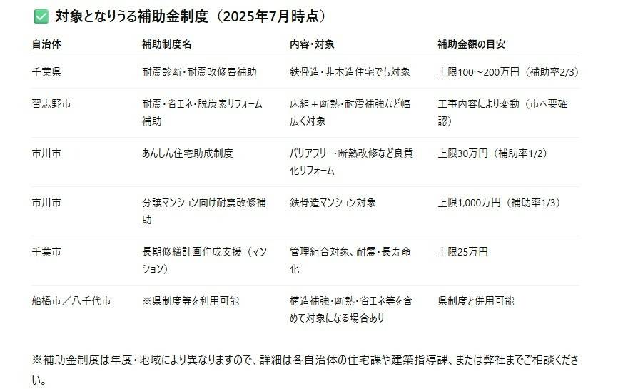 ◆ 習志野市で活用できる補助金例(2025年現在)