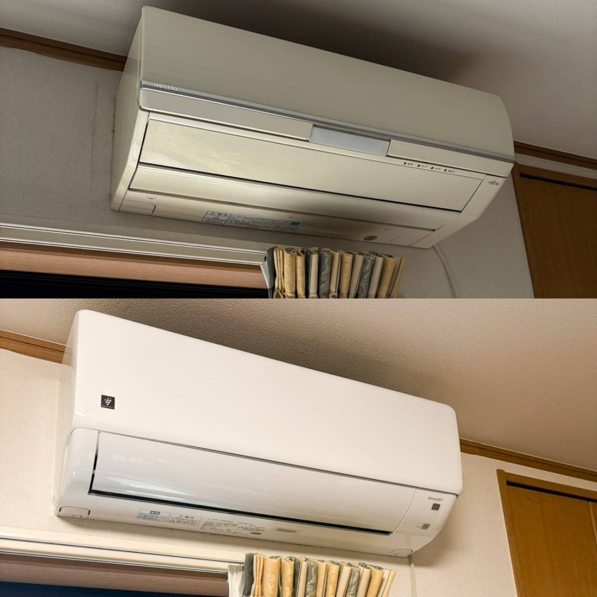 📸エアコン室内機ビフォーアフター 旧型エアコンから、スタイリッシュなAY-L40Dになり、 お部屋の印象も明るく。